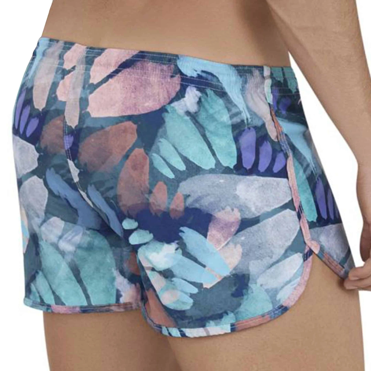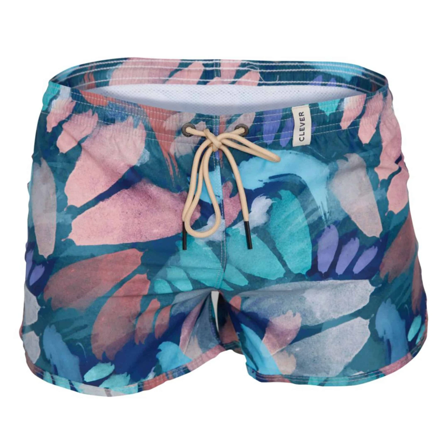 Short de bain taille basse en microfibre douce et confortable. Imprimé original très coloré. 2 poches. Ceinture élastique avec cordon de serrage.
