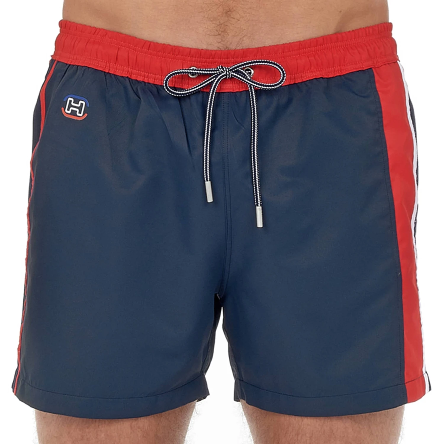 Short de bain sport en microfibre déperlante séchant rapidement. Coupe droite et rétro. Détails de couleurs contrastées. Slip intérieur en résille. 2 poches latérales et 1 poche arrière avec fermeture Velcro et oeillet. Ceinture élastique avec cordon de serrage.
