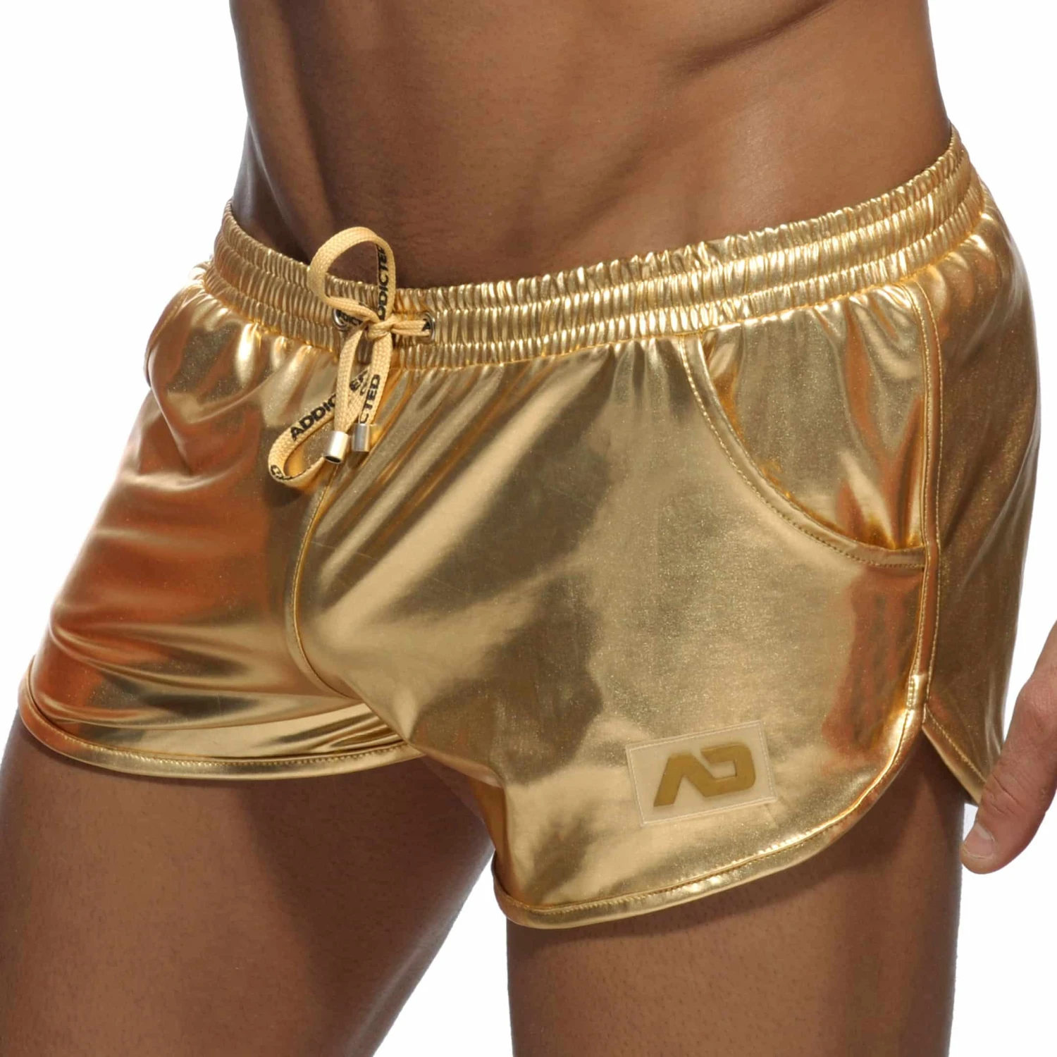 Short taille basse et sexy en microfibre métallisée très brillante. Tissu extensible très confortable et agréable au toucher. Coupe rétro courte et échancrée sur les côtés. 2 poches. Ceinture élastique avec cordon de serrage. Logo Addicted en silicone sur la cuisse gauche. Fabriqué à Barcelone.