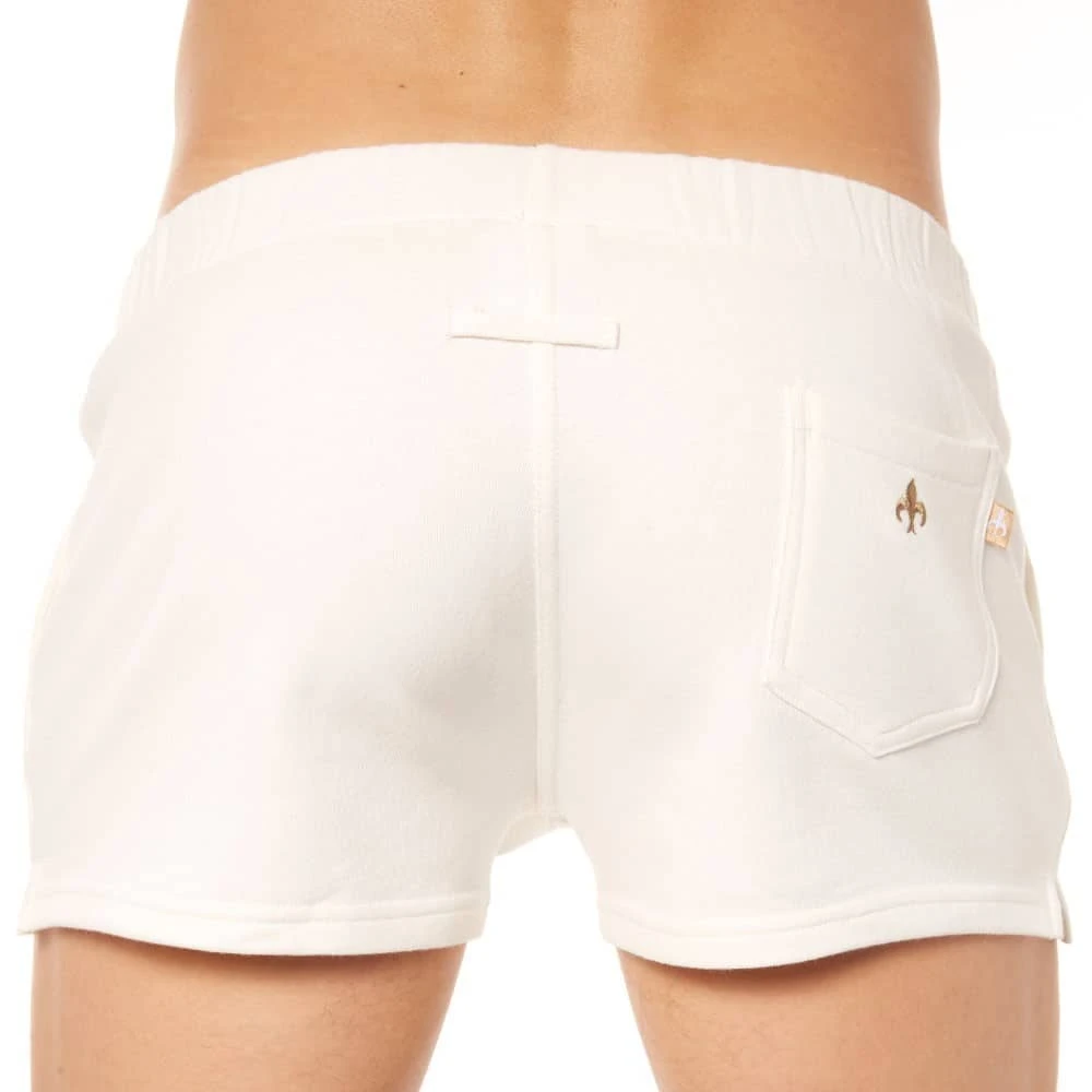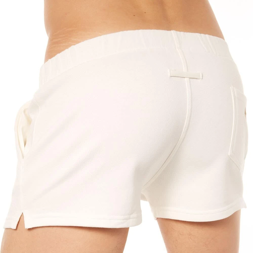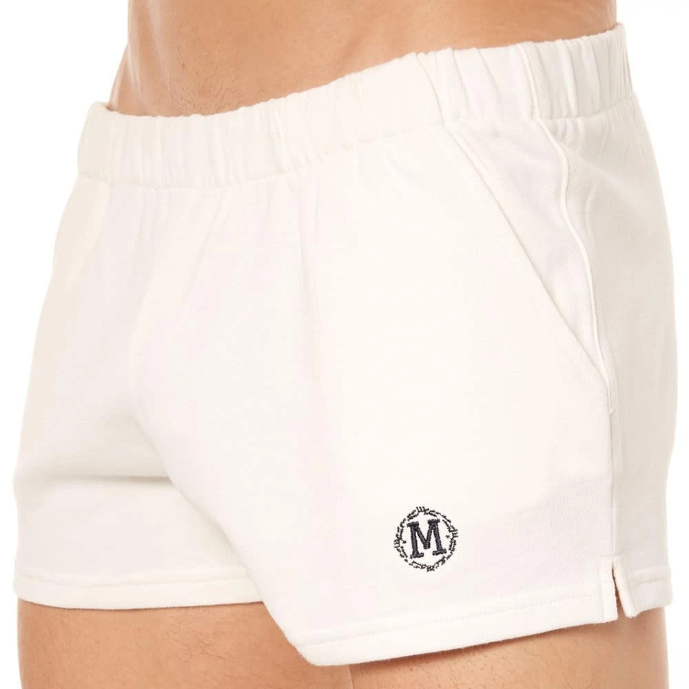 Short sport en pur coton doux et confortable. Coupe taille basse ajustée. 2 poches sur les côtés et 1 poche à l’arrière. Logo Marcuse brodé sur la cuisse gauche. Ceinture élastique recouverte.