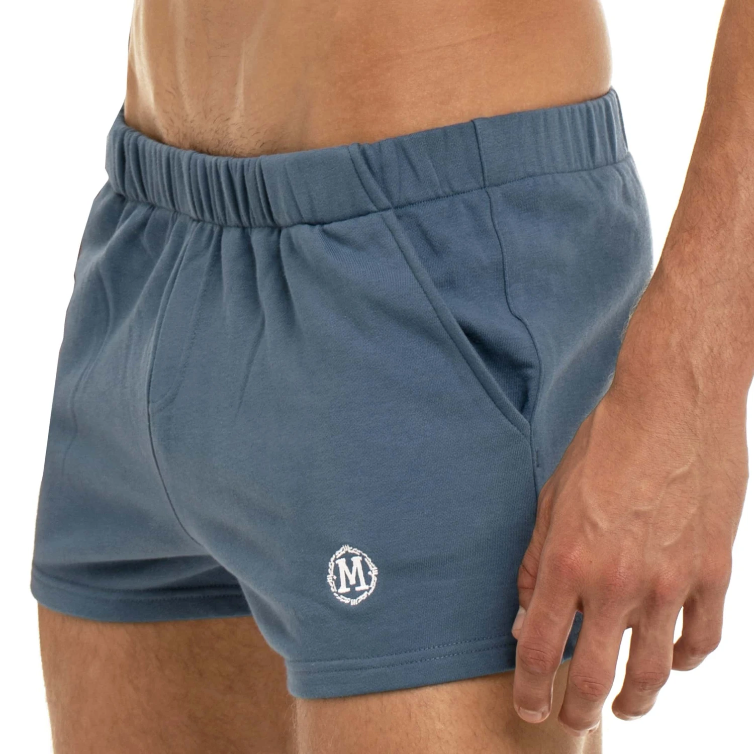 Short sport en pur coton doux et confortable. Coupe taille basse ajustée. 2 poches sur les côtés et 1 poche à l’arrière. Logo Marcuse brodé sur la cuisse gauche. Ceinture élastique recouverte.