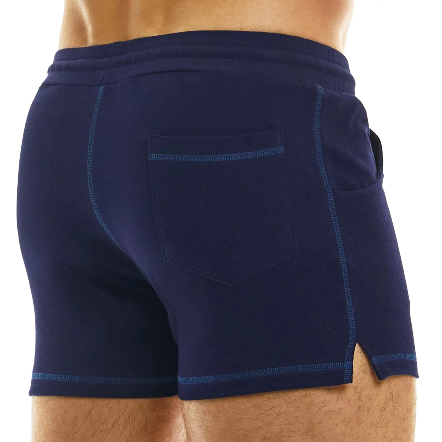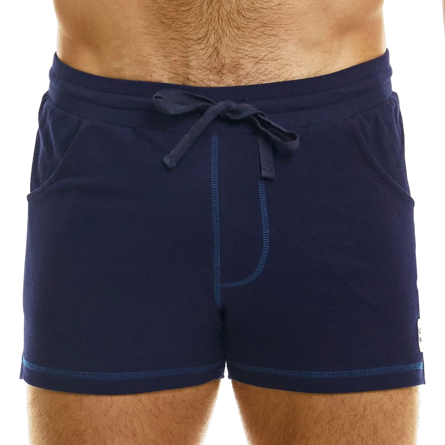 Short doux et confortable en coton piqué. 3 poches. Braguette factice. Logo transparent Modus Vivendi sur la jambe gauche. Ceinture élastique avec cordon de serrage.