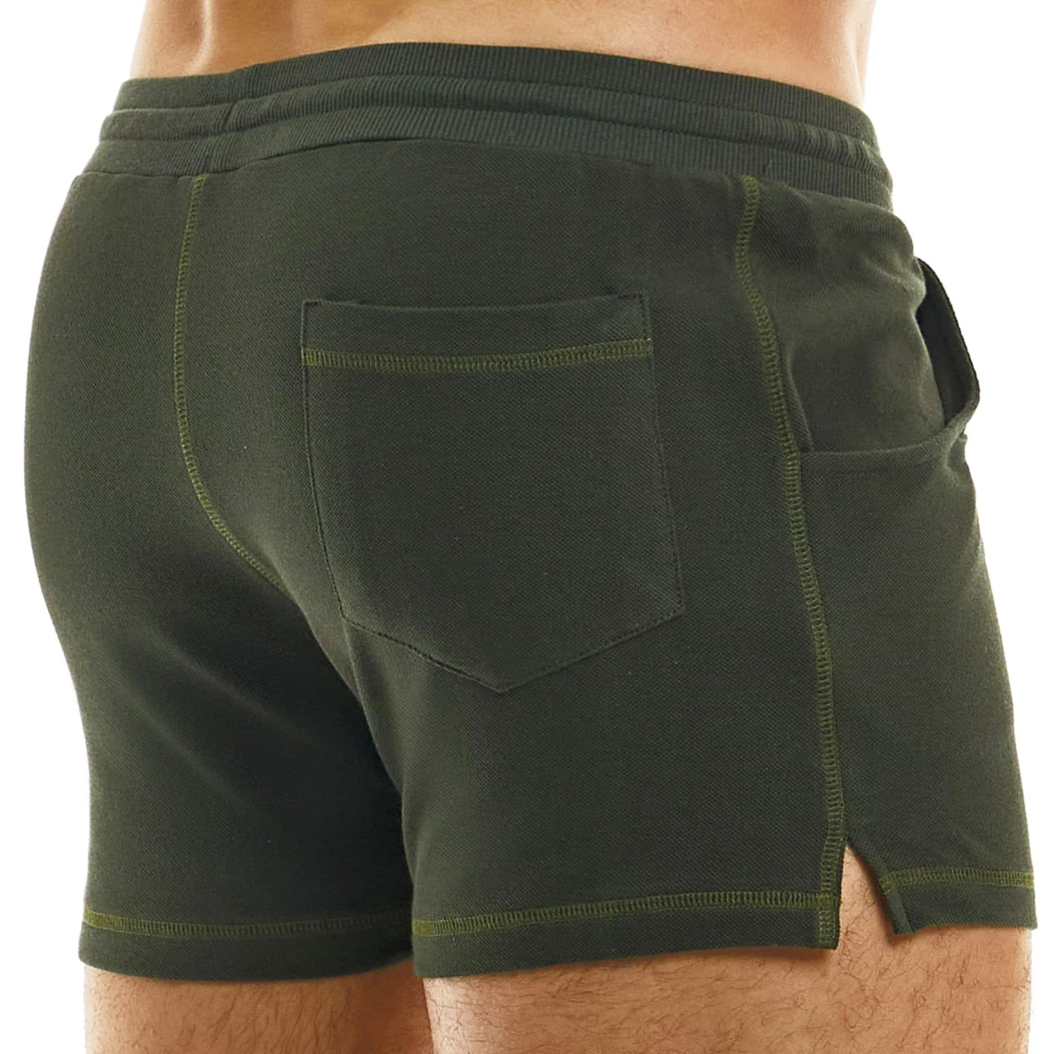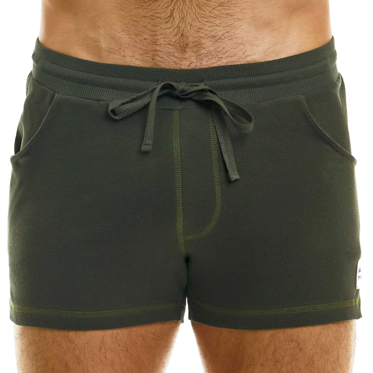 Short doux et confortable en coton piqué. 3 poches. Braguette factice. Logo transparent Modus Vivendi sur la jambe gauche. Ceinture élastique avec cordon de serrage.