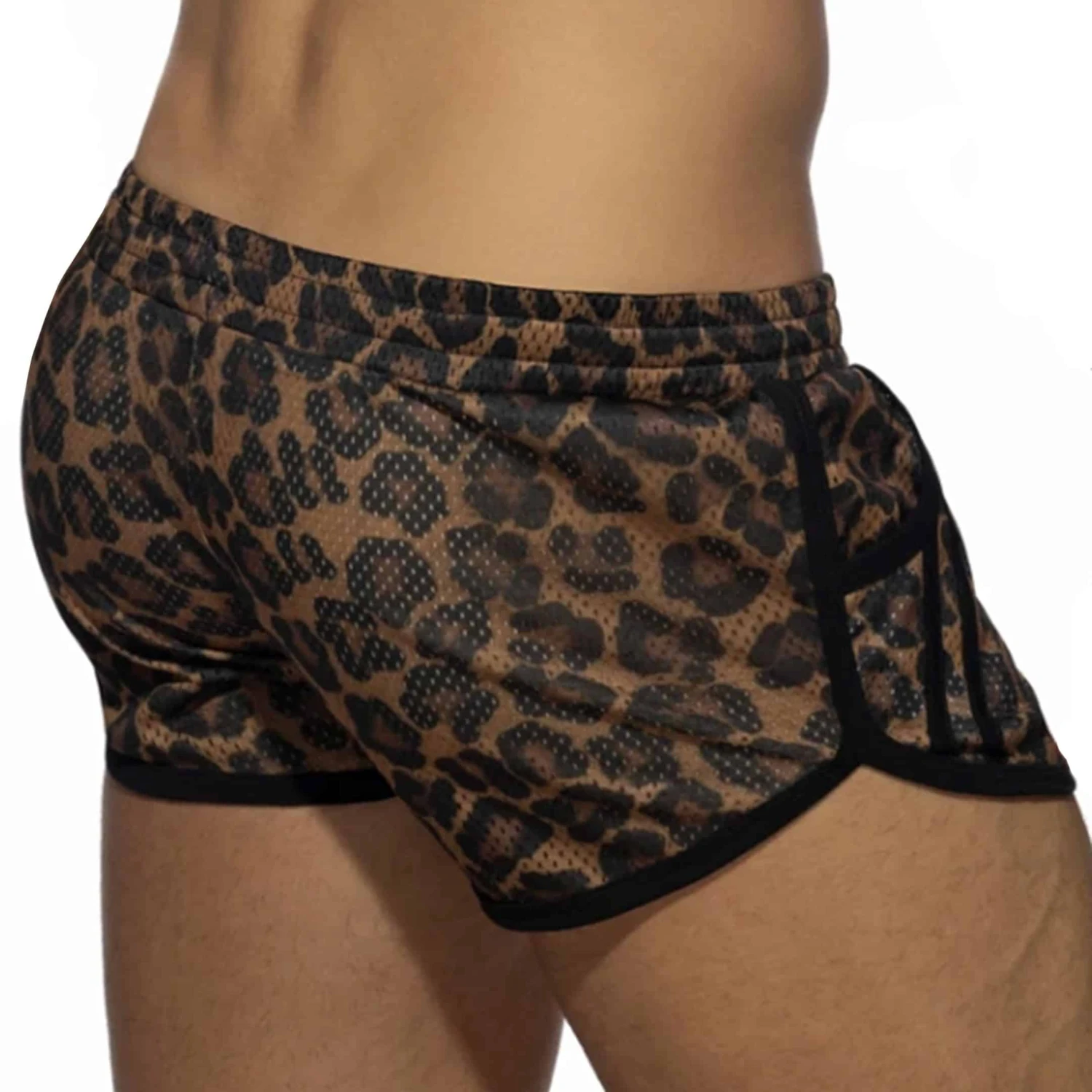 Short de sport en mesh respirant et semi-transparent. Imprimé leopard très sexy. Coupe échancrée sur le côté. Poche intérieure Kango pour un grand confort frontal. Logo AD en silicone cousu sur la jambe gauche.2 poches. Ceinture élastique avec cordon de serrage.