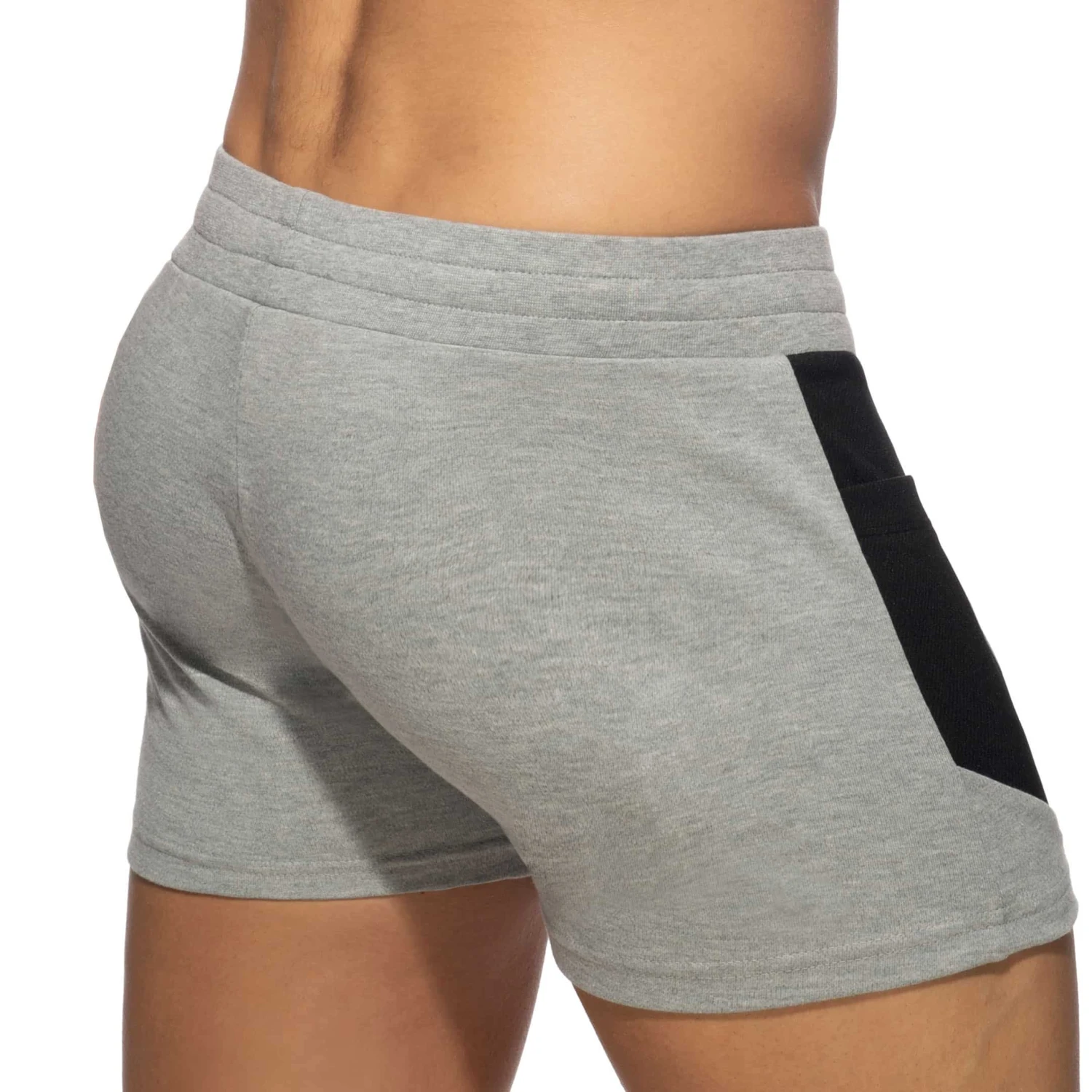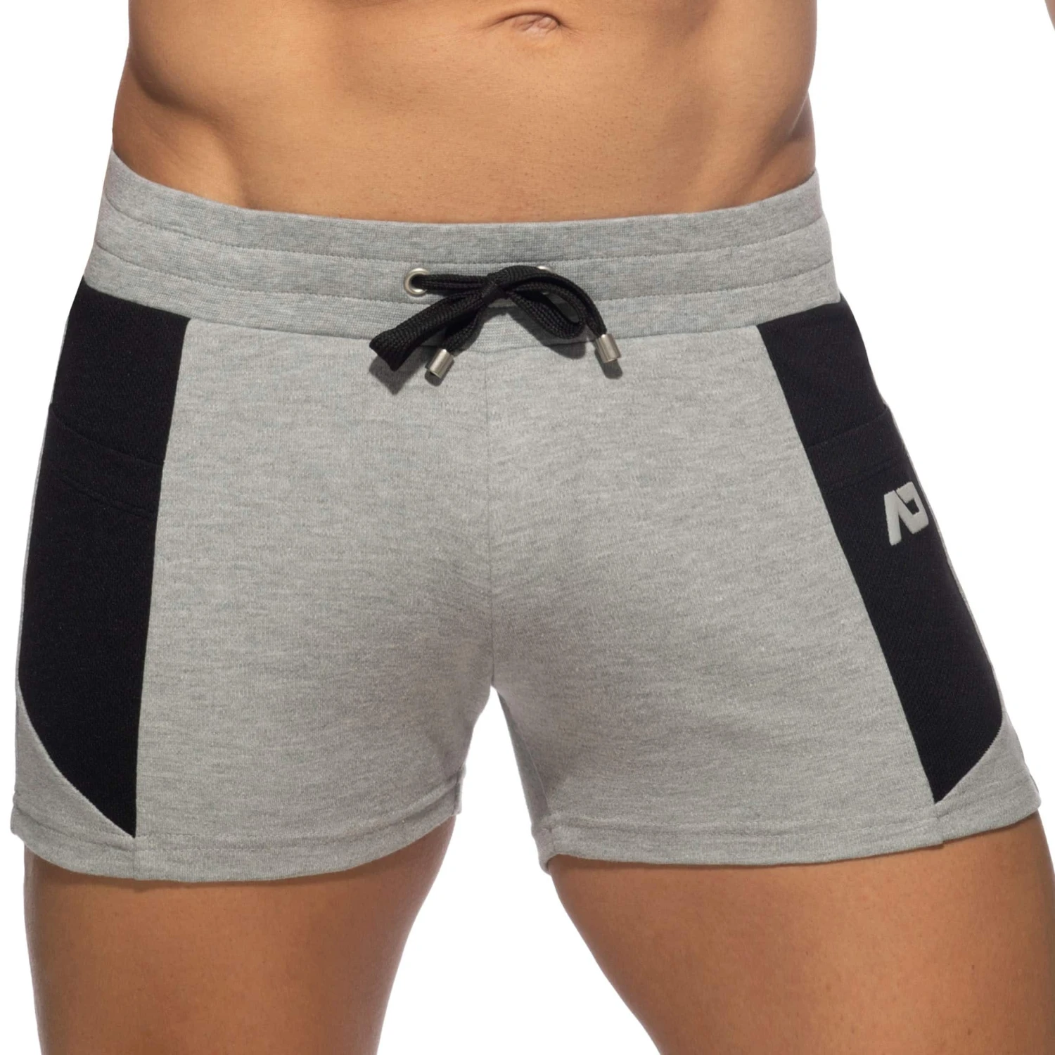 Short court en coton très doux, léger et confortable, idéal pour le sport. Empiècement en mesh de couleur contrastée avec petite poche sur chaque cuisse. Logo AD sur la jambe gauche. Ceinture élastique avec cordon de serrage.