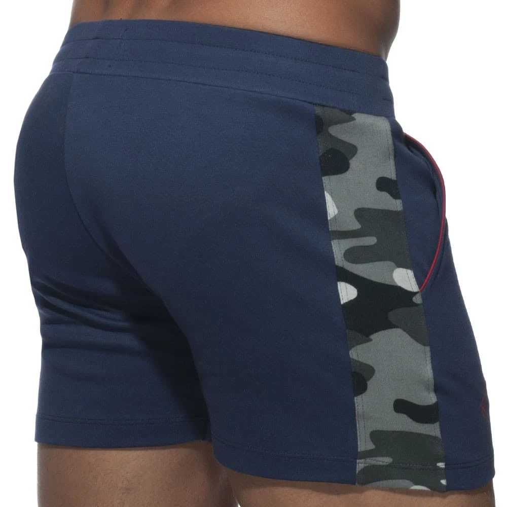 Short de sport en pur coton doux et confortable. Bande de couleur camouflage sur le côté. Ceinture élastique avec cordon de serrage. 2 poches. Logo Addicted sur la cuisse droite. Fabriqué à Barcelone.