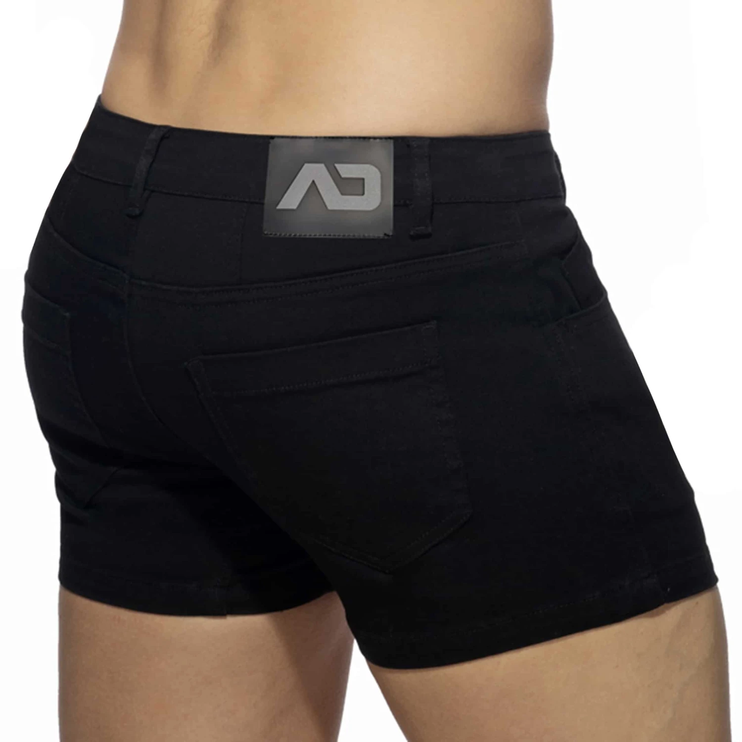 Short court en coton stretch, doux léger et respirant, parfait pour l’été. 5 poches. Passants de ceinture. Coutures style jean. Braguette à bouton et fermeture Eclair. Grand logo AD en silicone à l’arrière.