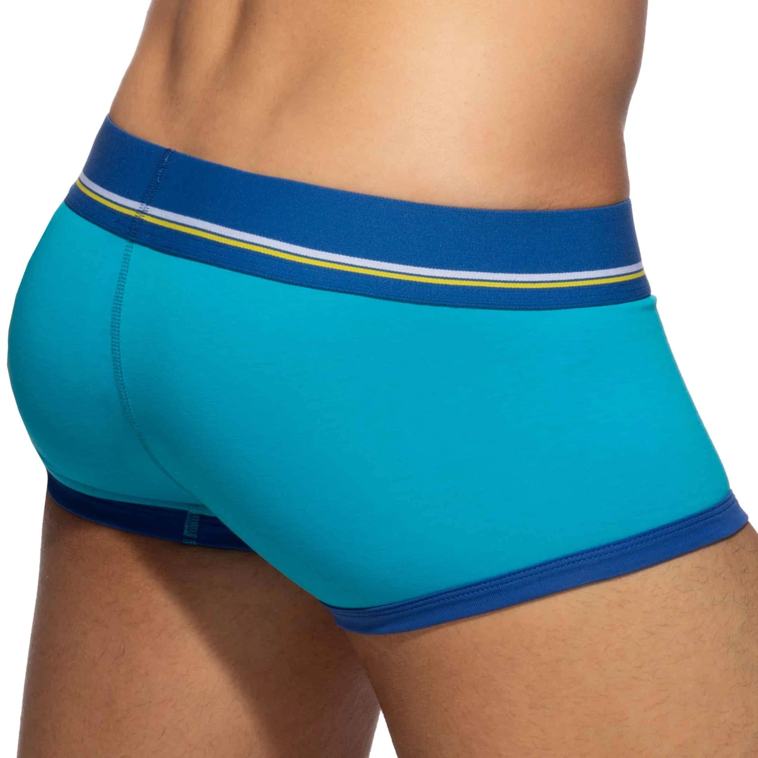 Shorty taille basse très ajusté en coton doux et confortable. Poche frontale non doublée. Bordures de couleur contrastée. Ceinture élastique signée Addicted. EXCLUSIVITE : coupe conçue par Les Dessous d’Apollon – Inderwear.