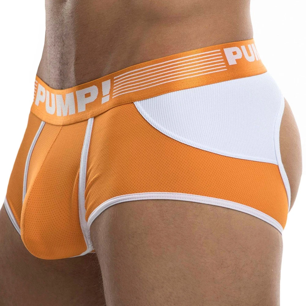 Shorty taille basse, en mesh doux, respirant et confortable. L’arrière a été découpé, à la manière d’un jockstrap, afin d’offrir une totale liberté de mouvement. Ceinture élastique signée PUMP!.