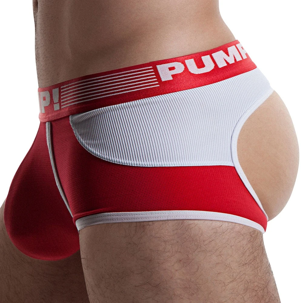 Shorty taille basse, en mesh doux, respirant et confortable. L’arrière a été découpé, à la manière d’un jockstrap, afin d’offrir une totale liberté de mouvement. Empiècements en microfibre côtelée sur les côtés et le haut des fesses. Bordures de couleur contrastée. Ceinture élastique signée PUMP!.
