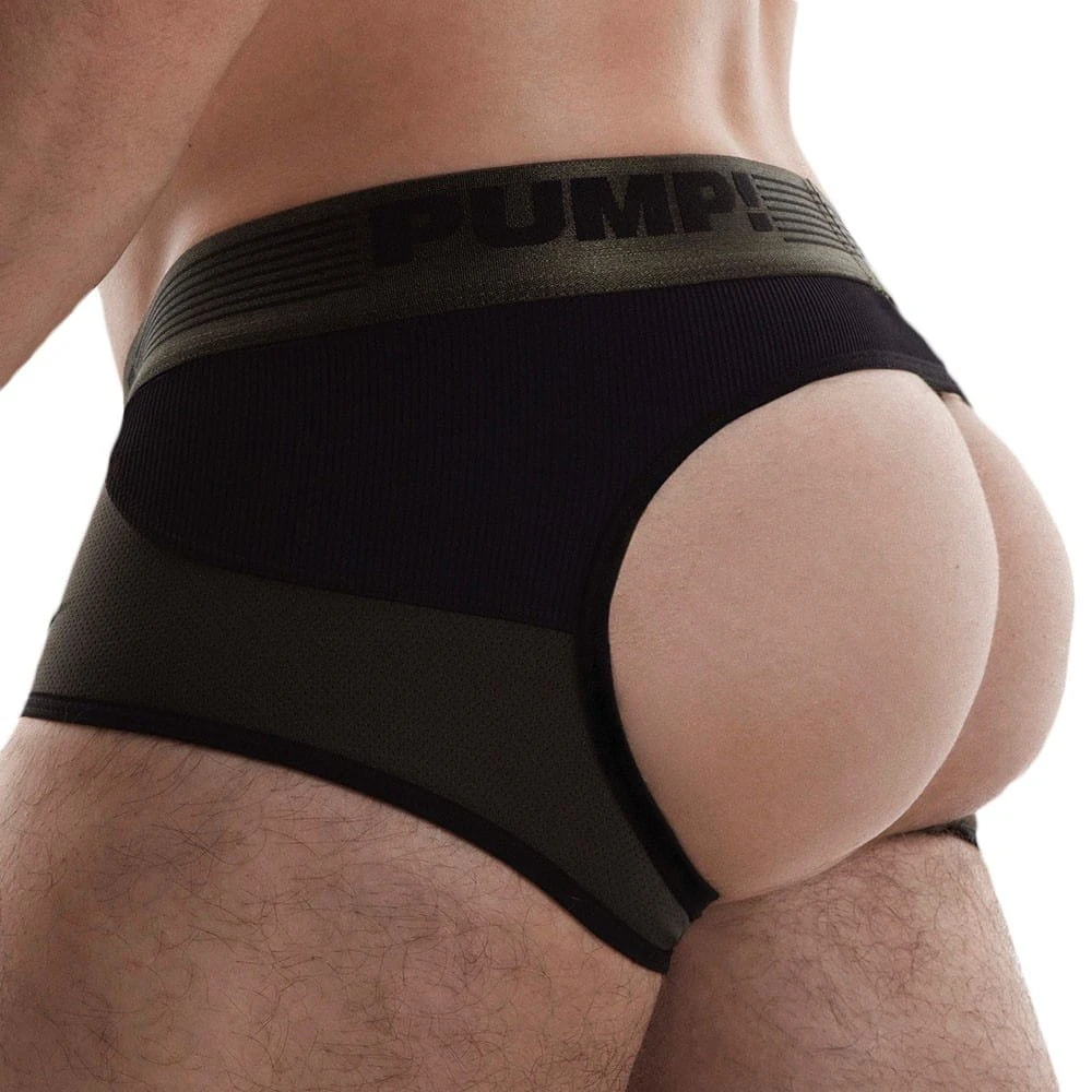 Shorty taille basse, en mesh doux, respirant et confortable. L’arrière a été découpé, à la manière d’un jockstrap, afin d’offrir une totale liberté de mouvement. Empiècements en microfibre côtelée sur les côtés et le haut des fesses. Bordures de couleur contrastée. Ceinture élastique signée PUMP!.