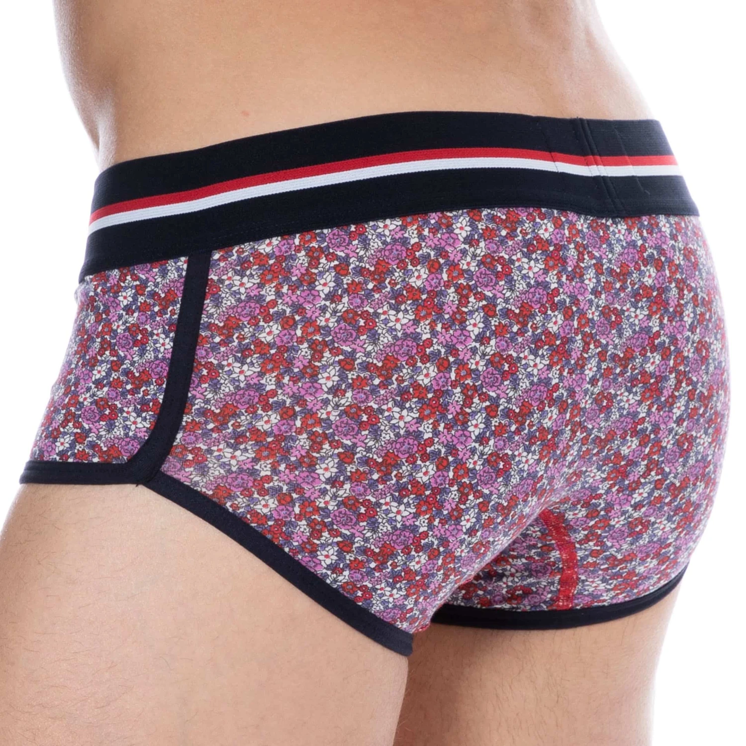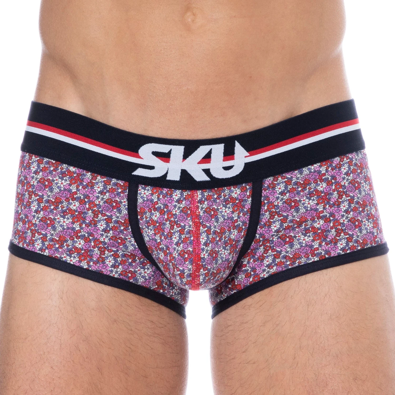Shorty sport et sexy en coton premium doux et extensiblee. Imprimé floral coloré et tendance. Coupe taille basse ajustée. Poche frontale préformée assurant un excellent maintien. Confort enveloppant sur les fesses. Belle échancrure sur le côté. Ceinture tricolore large et douce signée SKU. Bordures contrastées.