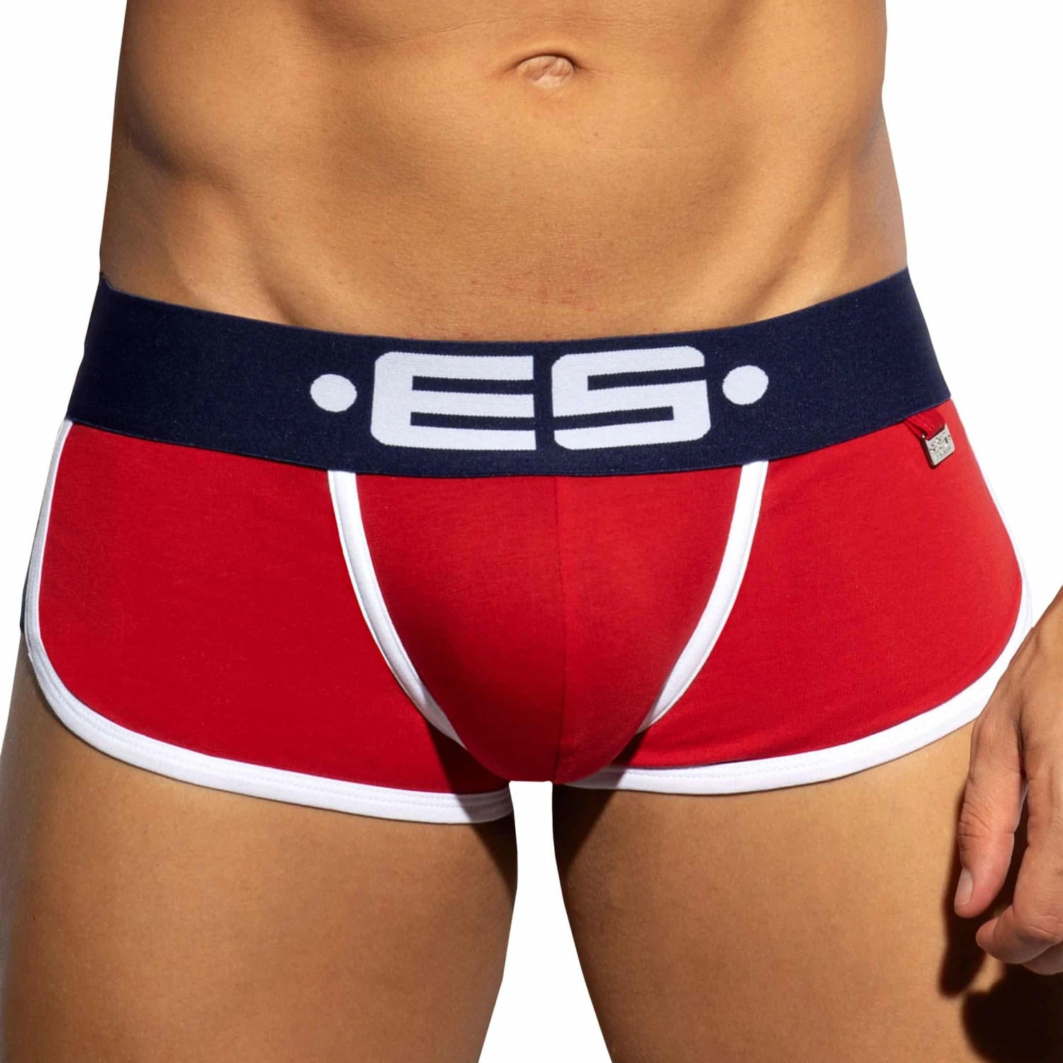 Shorty dont la coupe taille basse parfaitement ajustée a été conçue par Les Dessous d’Apollon. Poche frontale superbement découpée pour un très grand confort. L’échancrure sur le côté est soulignée par une bande de couleur contrastée. Large ceinture élastique signée ES Collection. Plaque métallique ES Paris en Zamak inoxydable.