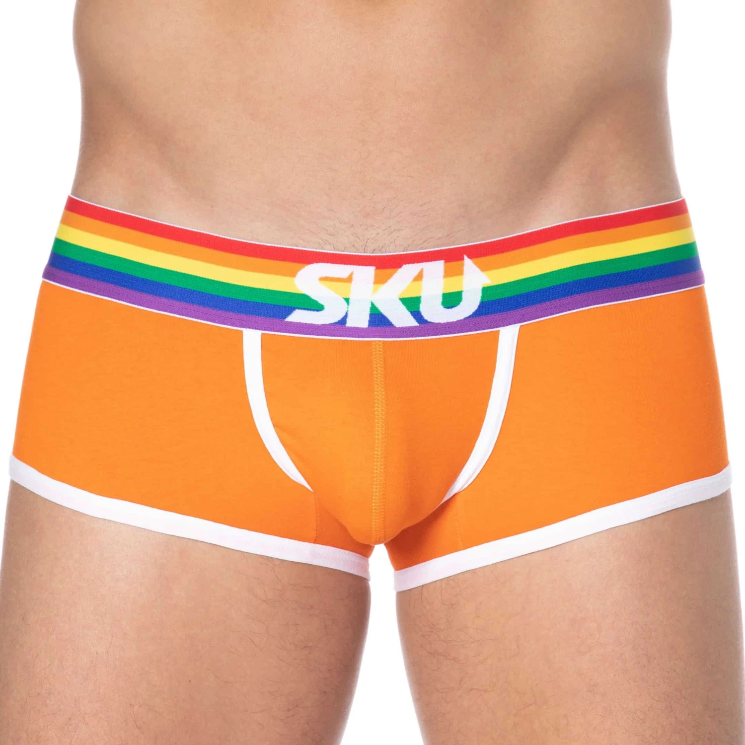 Shorty sport et sexy en coton premium doux et extensible de couleur intense. Coupe taille basse ajustée. Poche frontale préformée assurant un excellent maintien. Confort enveloppant sur les fesses. Belle échancrure sur le côté. Ceinture arc-en-ciel, large et douce, signée SKU. Bordures contrastées.