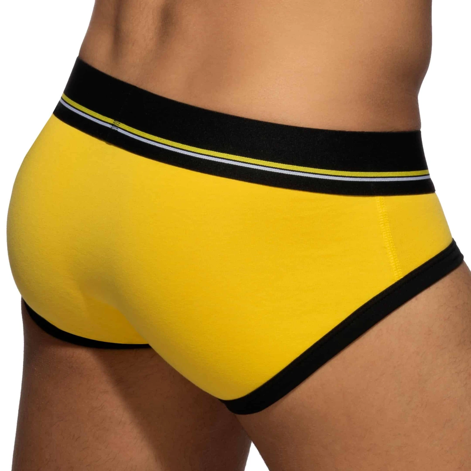 Slip taille basse très ajusté en coton doux et confortable. Poche frontale non doublée. Bordures de couleur contrastée. Ceinture élastique signée Addicted. EXCLUSIVITE : coupe conçue par Les Dessous d’Apollon – Inderwear.
