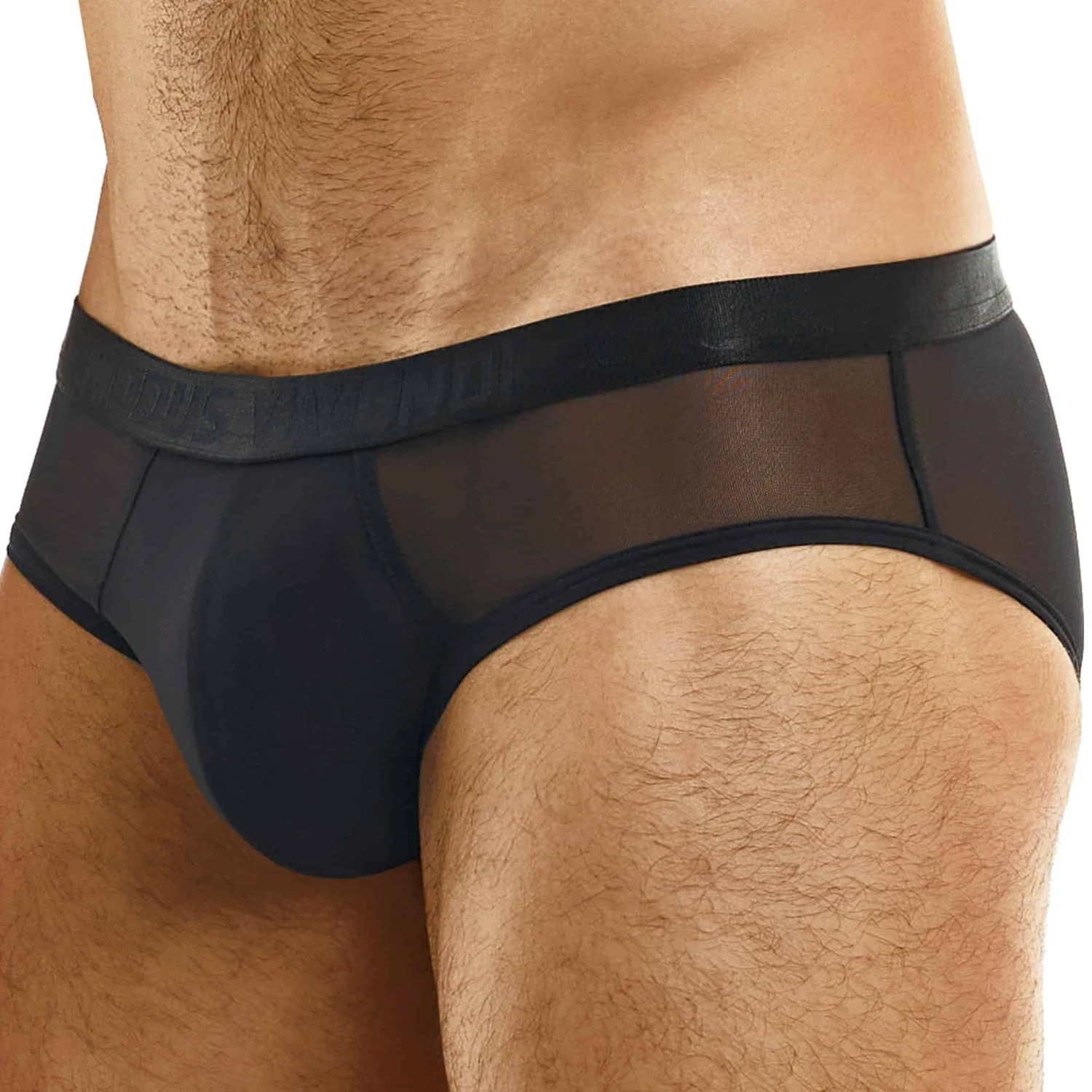 Slip taille basse très sexy et ajusté en mousseline transparente. Poche frontale doublée. Ceinture élastique signée Modus Vivendi.