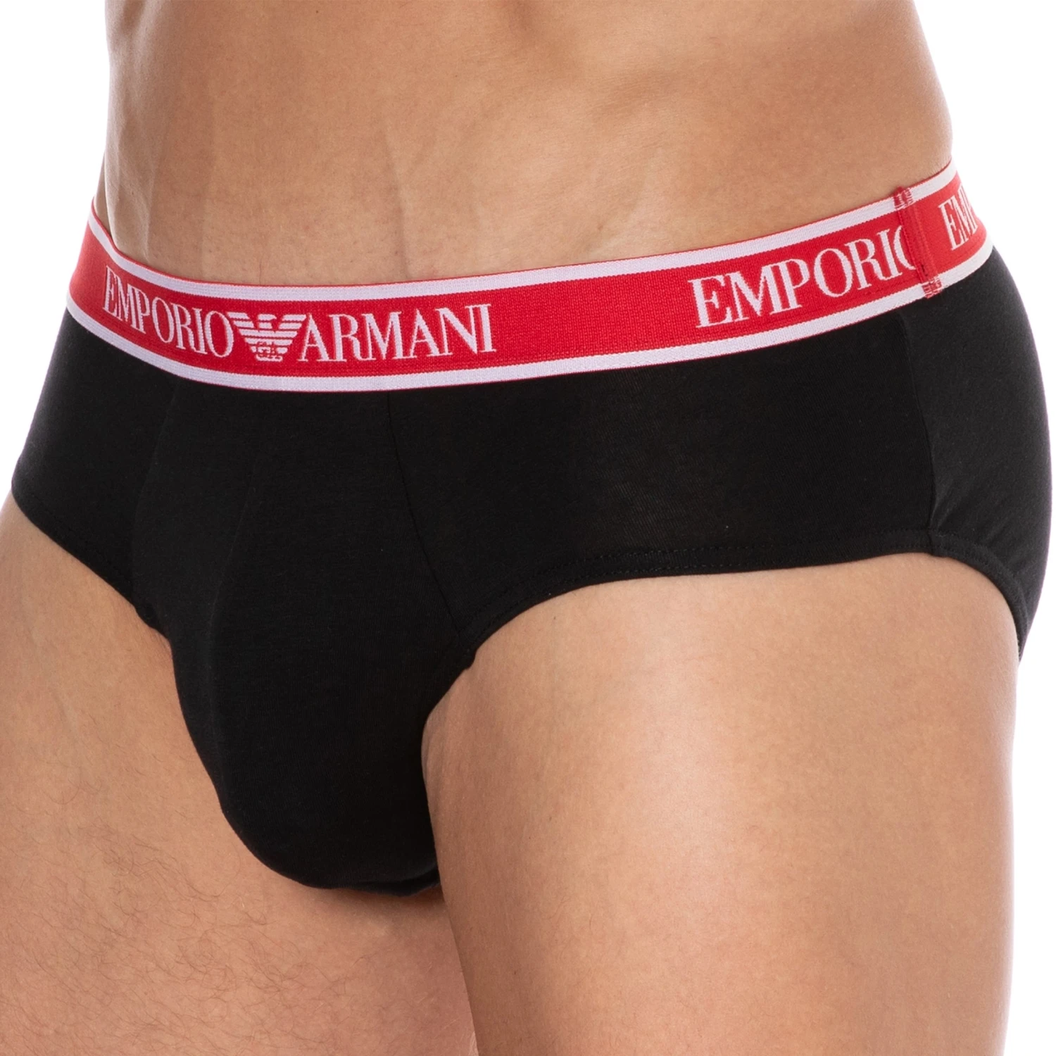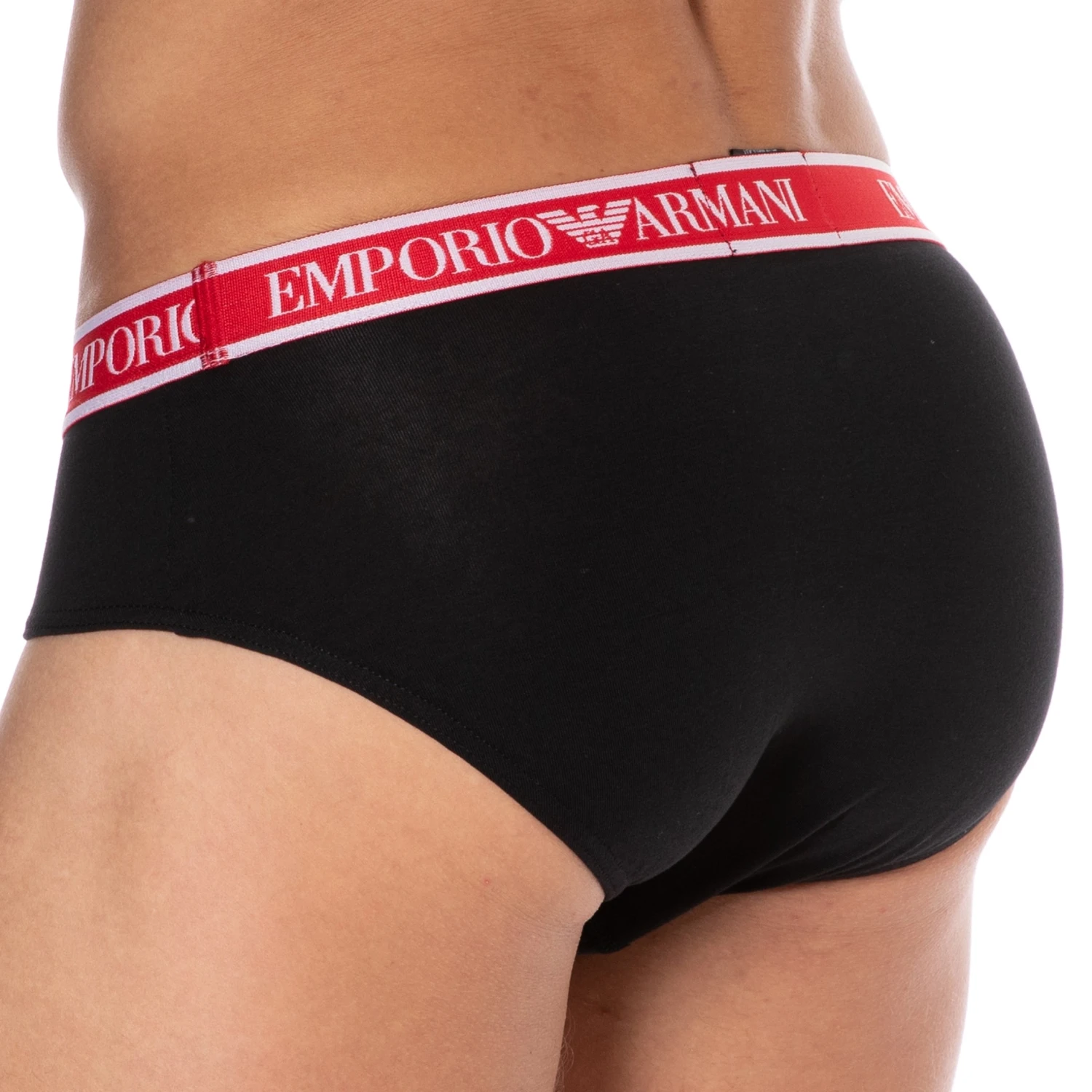 Slip en coton extensible, doux et confortable. Coupe taille basse, simple et élégante. Poche frontale doublée. Ceinture élastique de couleur contrastée signée Emporio Armani.