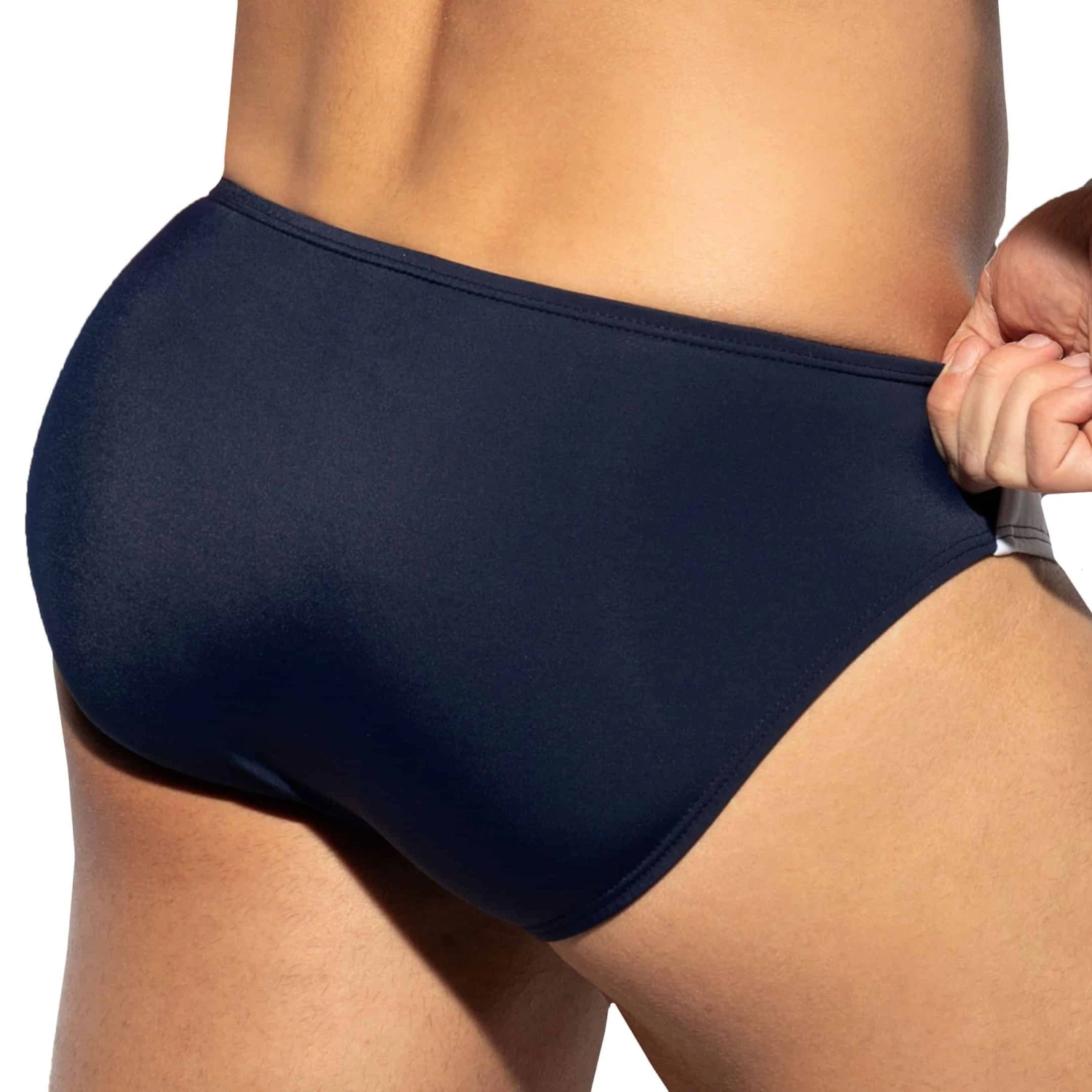 Slip de bain bikini en microfibre résistante et confortable aux couleurs de votre équipe nationale préférée. Système Pack Up intégré avec mousse amovible pour plus de volume frontal. Poche frontale moulée sans couture pour un confort optimal. Logo ES Collection en silicone.