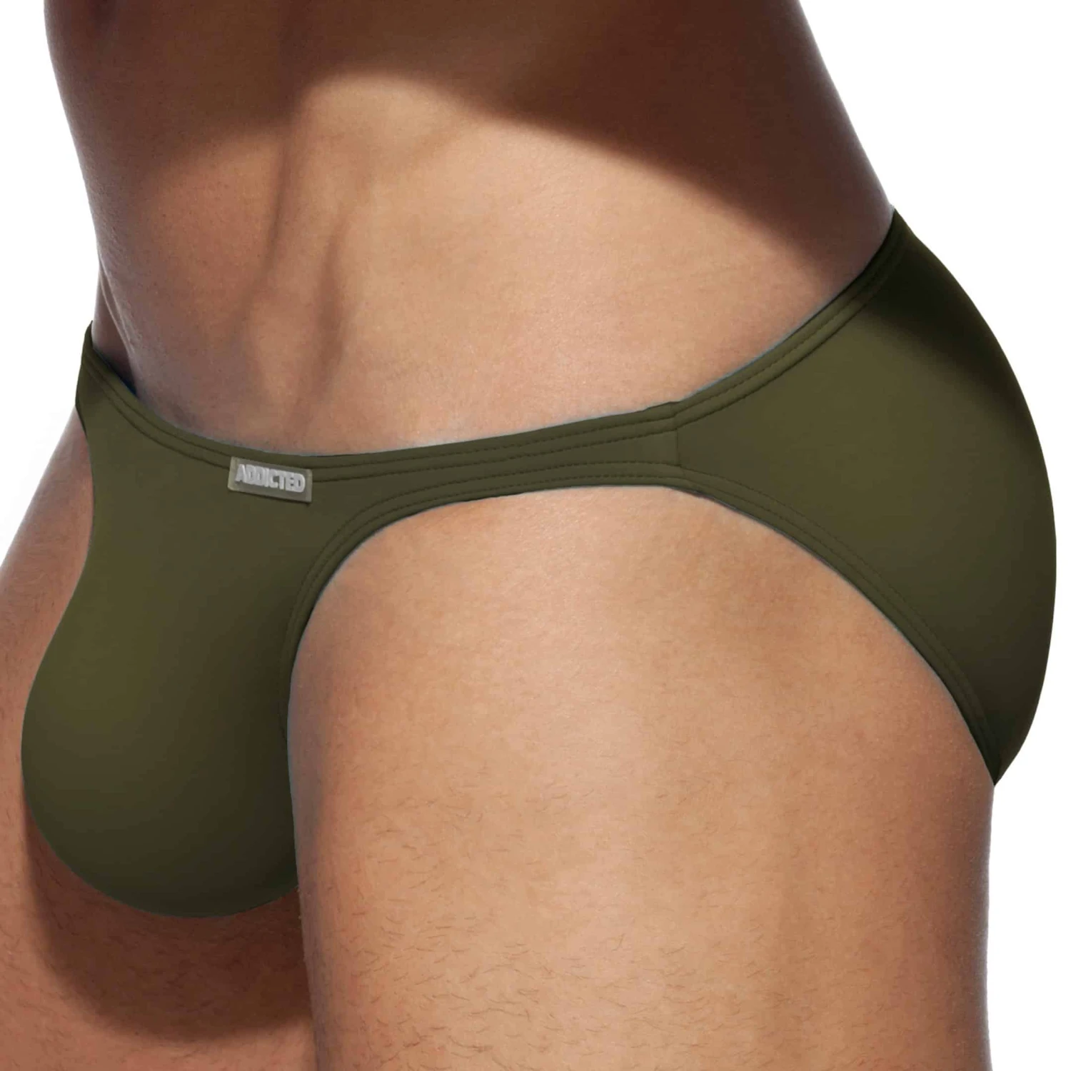 Slip de bain en microfibre douce, légère et confortable de couleur unie. Coupe taille basse, minimaliste et très sexy. Système Pack Up intégré avec mousse amovible pour plus de volume. Logo Addicted en silicone sur la fine ceinture élastique.