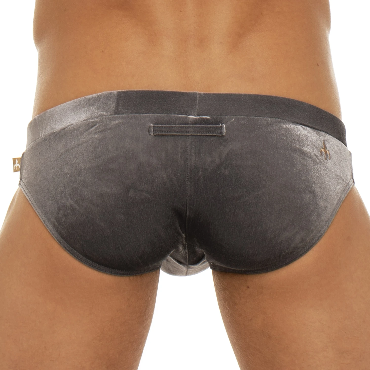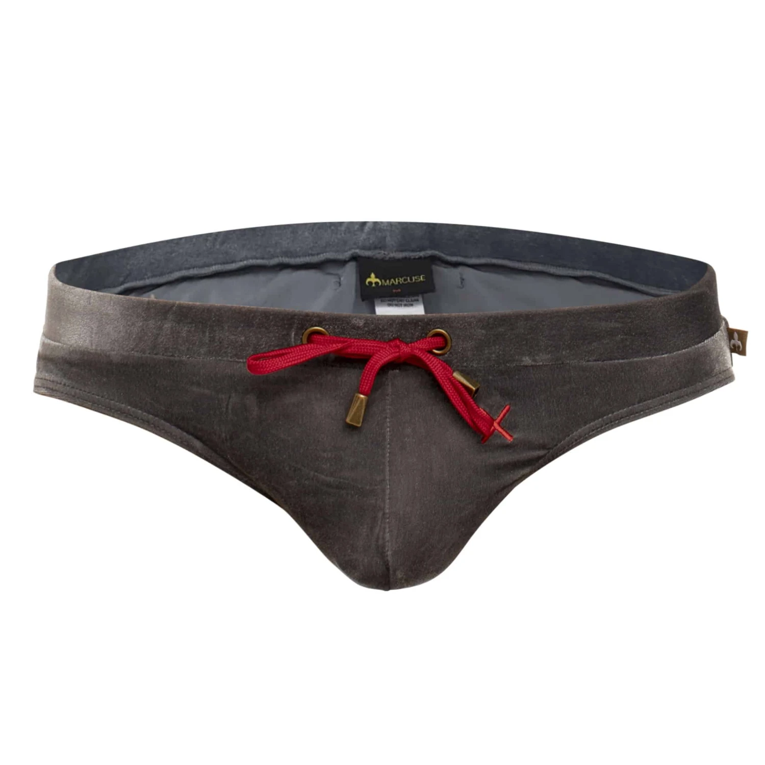Slip de bain confortable en velours italien stretch et incroyablement doux. Broderie X devant. Poche frontale préformée non doublée. Logo Marcuse brodé sur la fesse droite. Ceinture élastique avec cordon de serrage de couleur contrastée.
