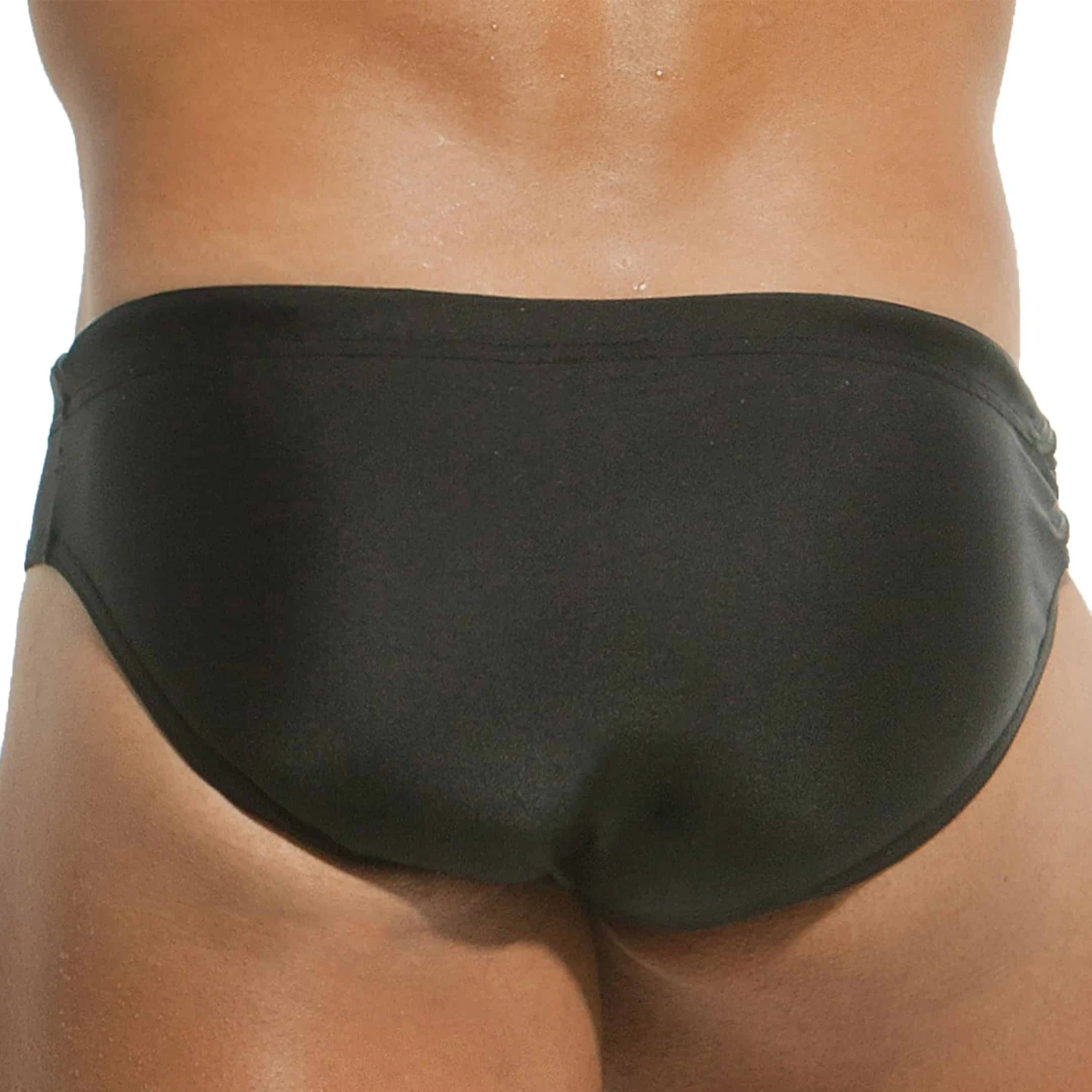 Slip de bain taille en microfibre séchant rapidement. Coupe classique et confortable. Poche frontale doublée opaque. Ceinture élastique avec cordon de serrage intérieur. Logo Modus Vivendi sous la ceinture élastique.