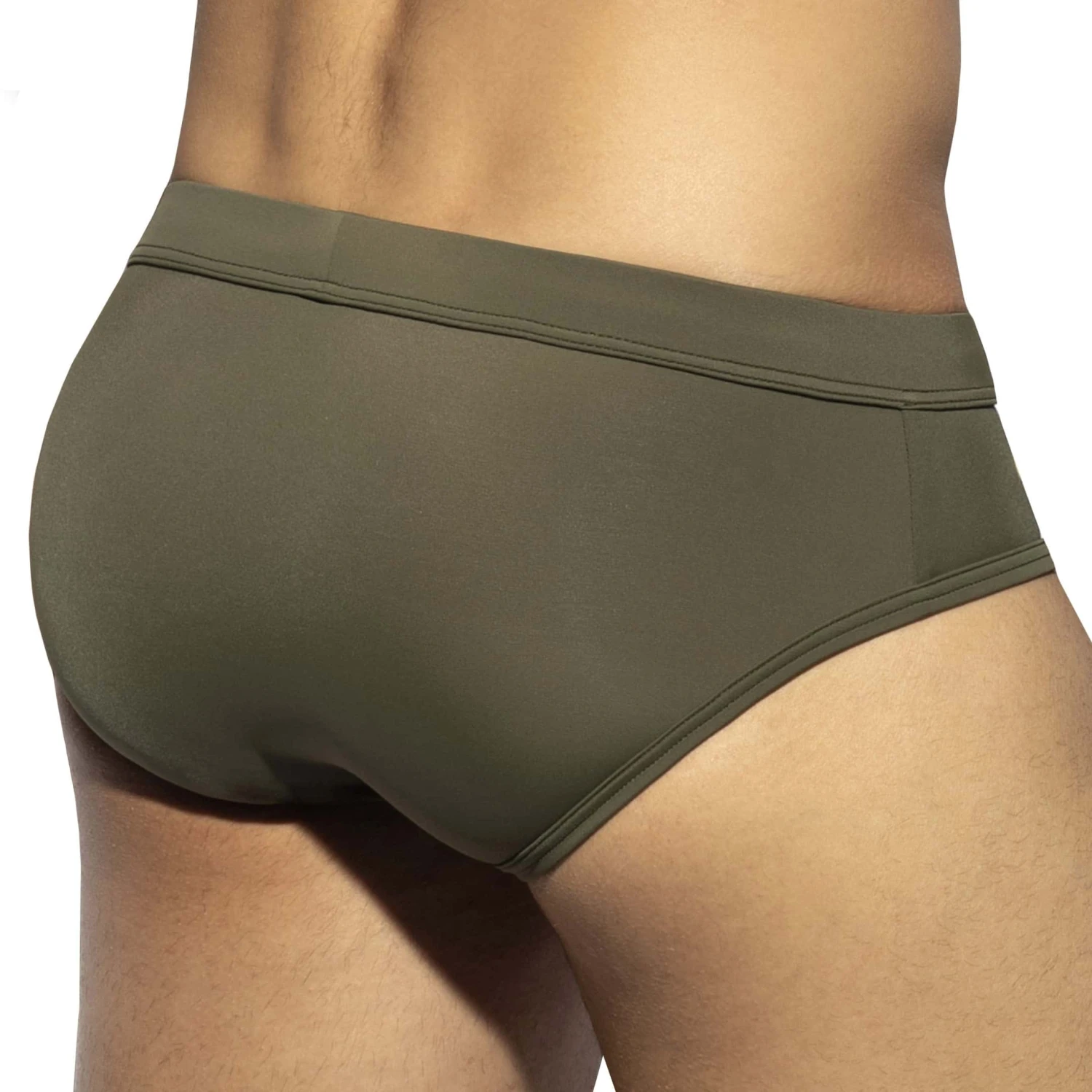 Slip de bain taille basse en microfibre douce et légère de couleur unie. Système Pack Up intégré avec mousse amovible pour plus de volume frontal. Ceinture élastique avec cordon de serrage. Logo ES Collection en relief sur la hanche droite.