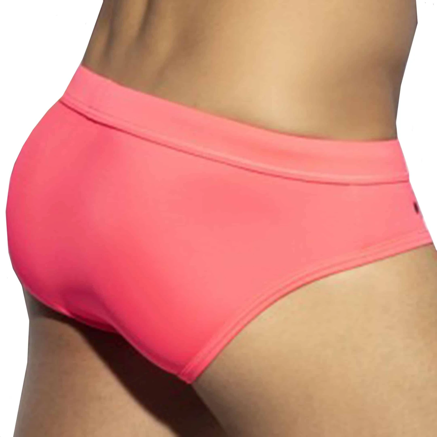 Slip de bain taille basse en microfibre douce et légère de couleur fluo. Système Pack Up intégré avec mousse amovible pour plus de volume frontal. Ceinture élastique avec cordon de serrage. Logo ES Collection en technologie 3D sur la hanche droite.