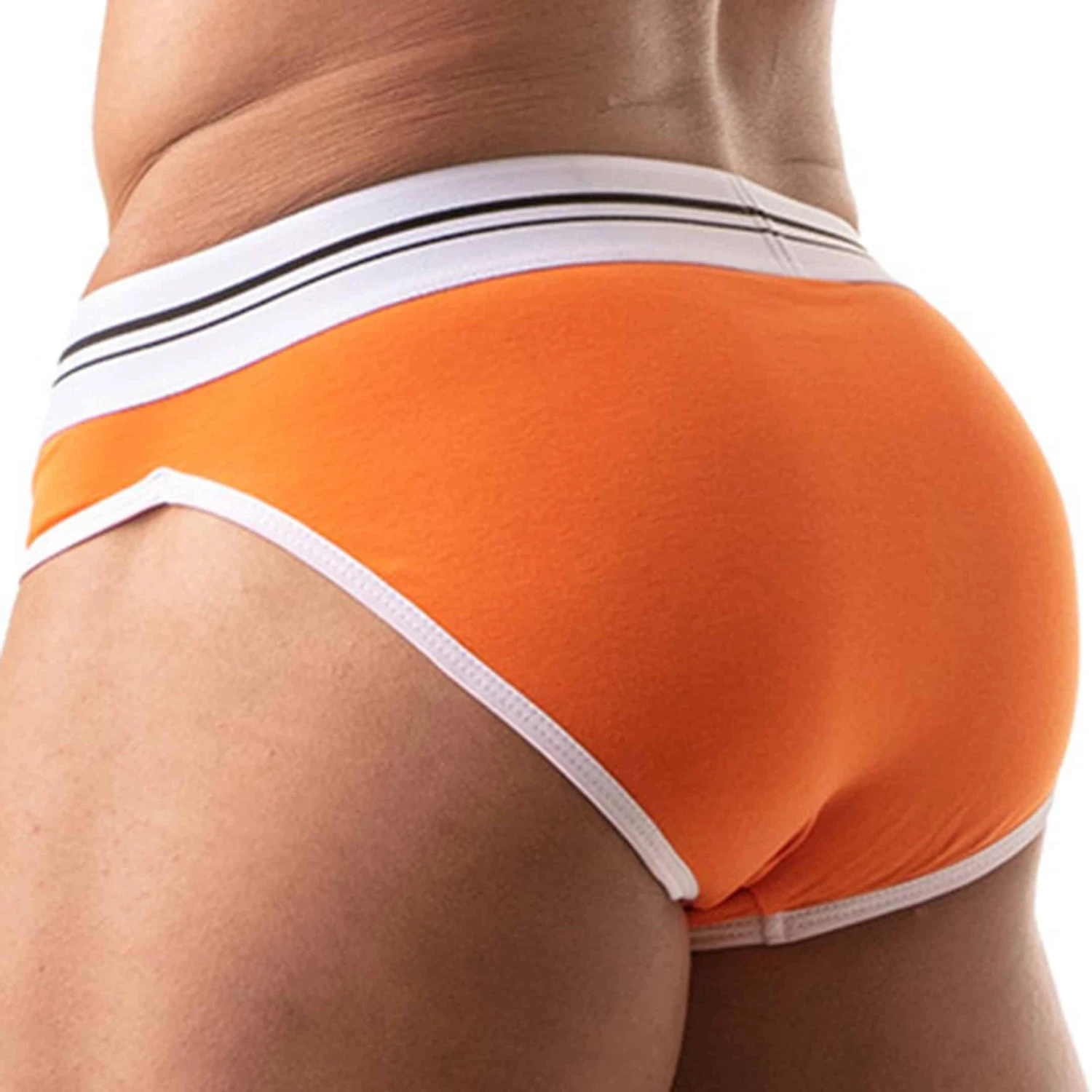 Slip taille basse en coton stretch. Grande poche frontale doublée. Bordures de couleur contrastée. Superbe coupe incurvée sans couture sur les côtés, pour un grand confort et de belles fesses rondes. Ceinture élastique jacquard signée TOF. Fabrication française.
