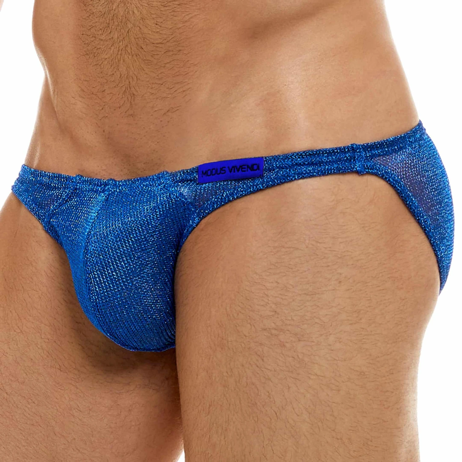 Slip semi-transparent tricoté à base de fils métallisés Lurex pour un parfait effet cotte de mailles. Poche frontale préformée et doublée. Coupe minimaliste, taille basse et très sexy. Ceinture élastique fine avec étiquette Modus Vivendi. Fabriqué en Grèce.