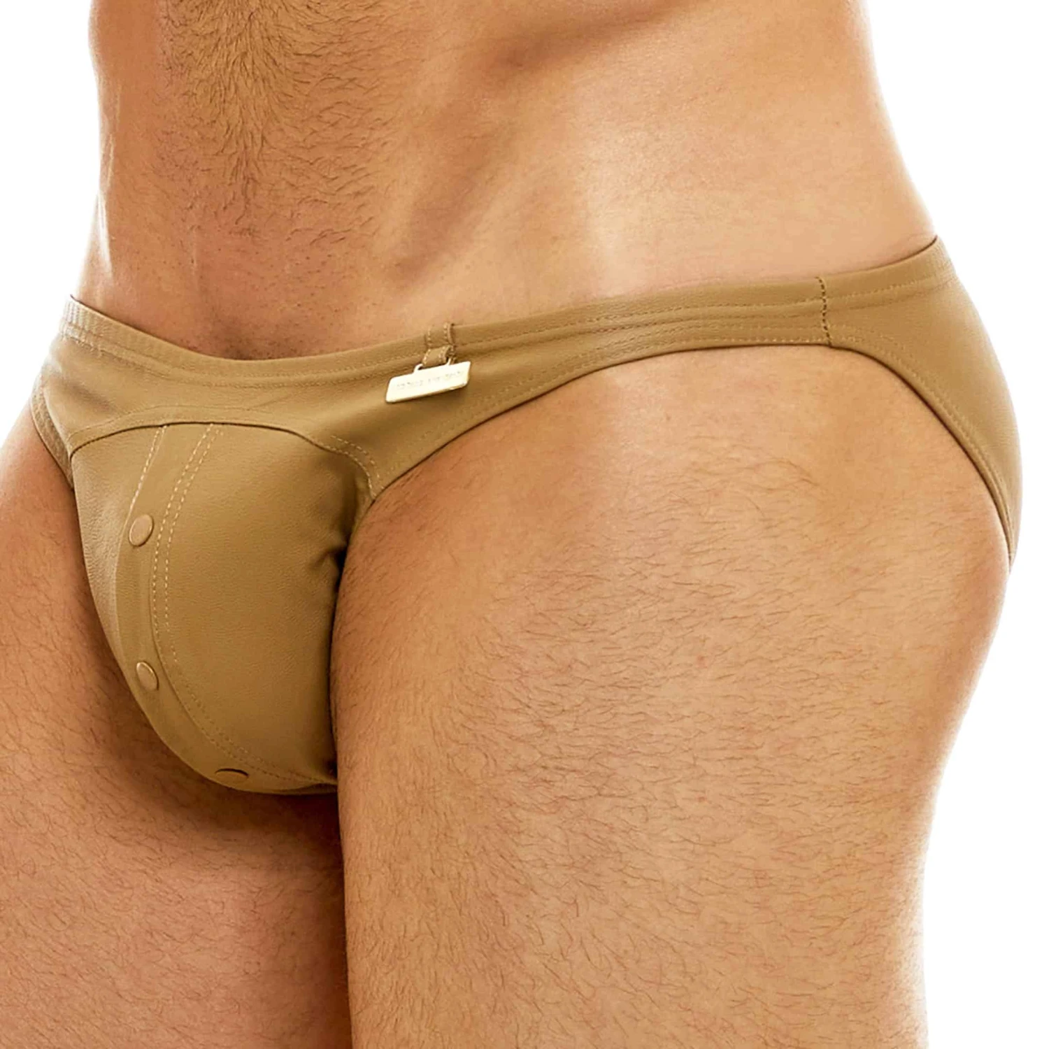 Slip très luxueux en microfibre douce et confortable imitant parfaitement le cuir. Coupe super taille basse. La poche frontale s’ouvre à l’aide de 3 boutons-pression. Logo métallique Modus Vivendi accroché à la fine ceinture élastique recouverte.