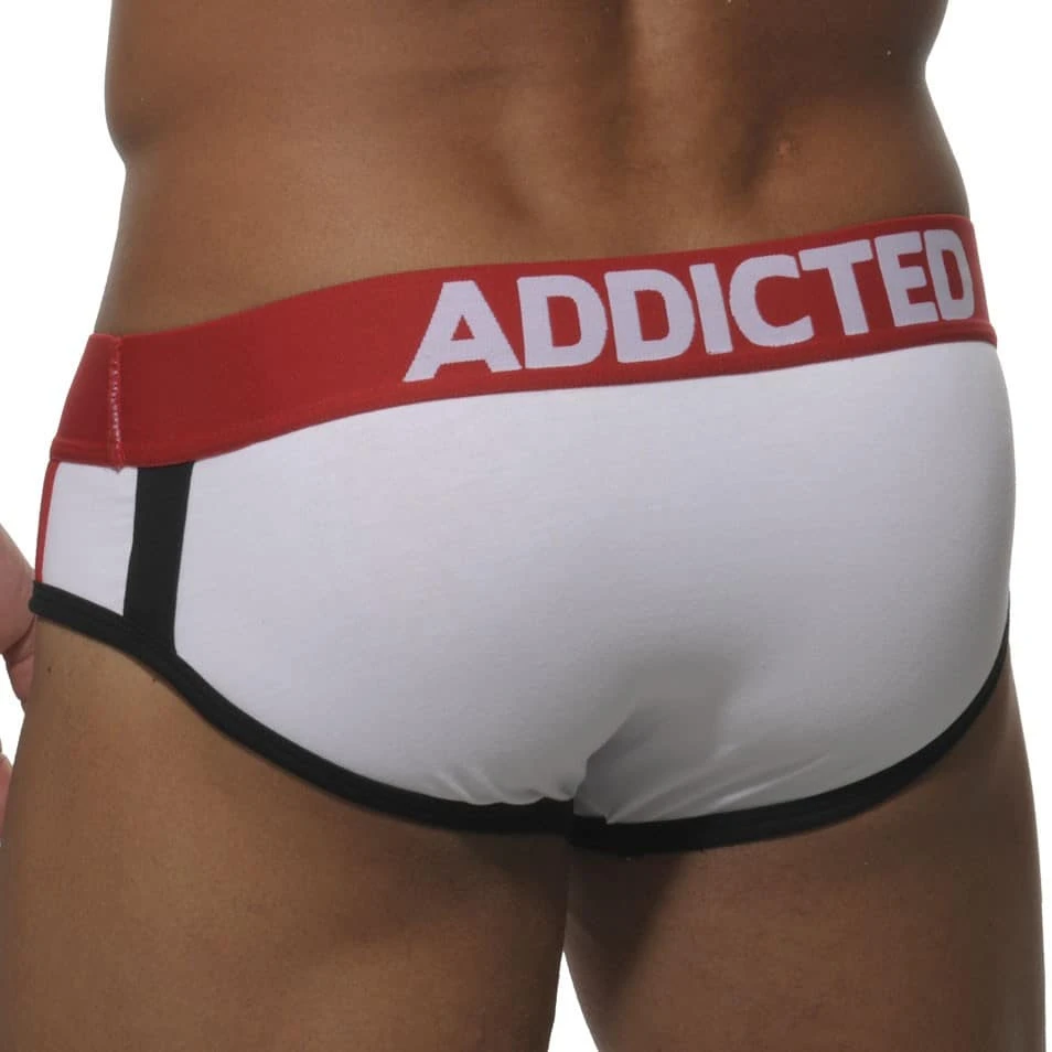Slip taille basse en coton super confortable. Système Pack Up intégré pour un effet push up maximal. Ceinture Addicted. Bandes latérales et bordures de couleurs contrastées.