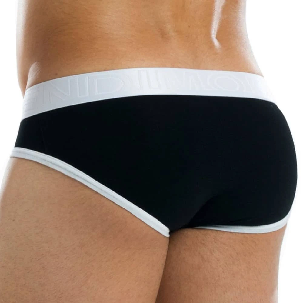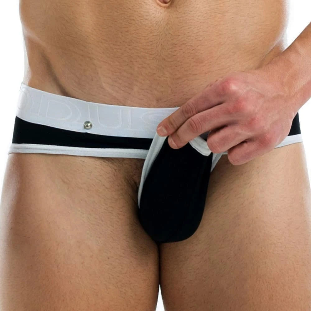 Slip taille basse sexy en coton, dont la poche frontale se déboutonne. Inutile de l’enlever pour passer à l’action ! Ceinture blanche large signée Modus Vivendi.