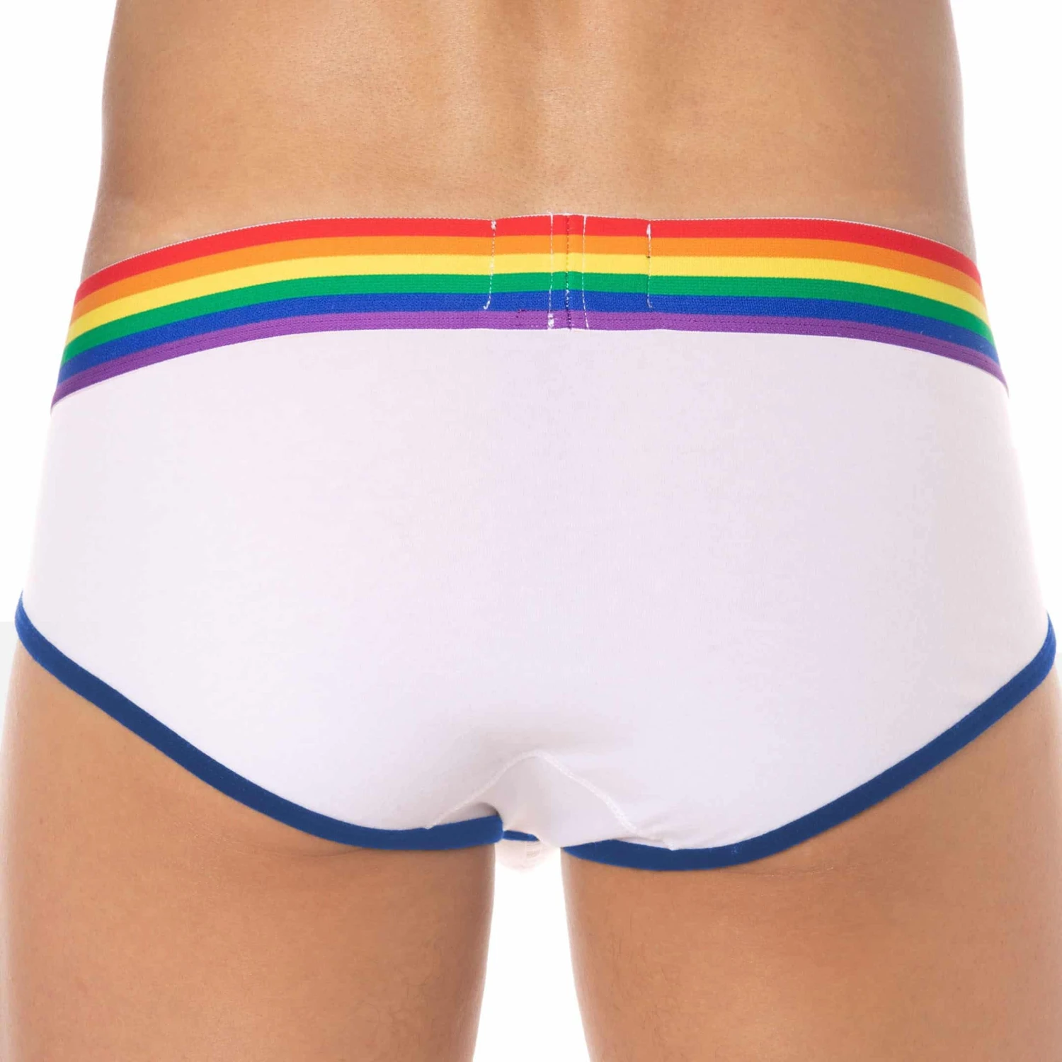 Slip sport et sexy en coton premium doux et extensible de couleur intense. Coupe taille basse ajustée. Poche frontale préformée assurant un excellent maintien. Confort enveloppant sur les fesses. Belle échancrure sur le côté. Ceinture arc-en-ciel, large et douce, signée SKU. Bordures contrastées.