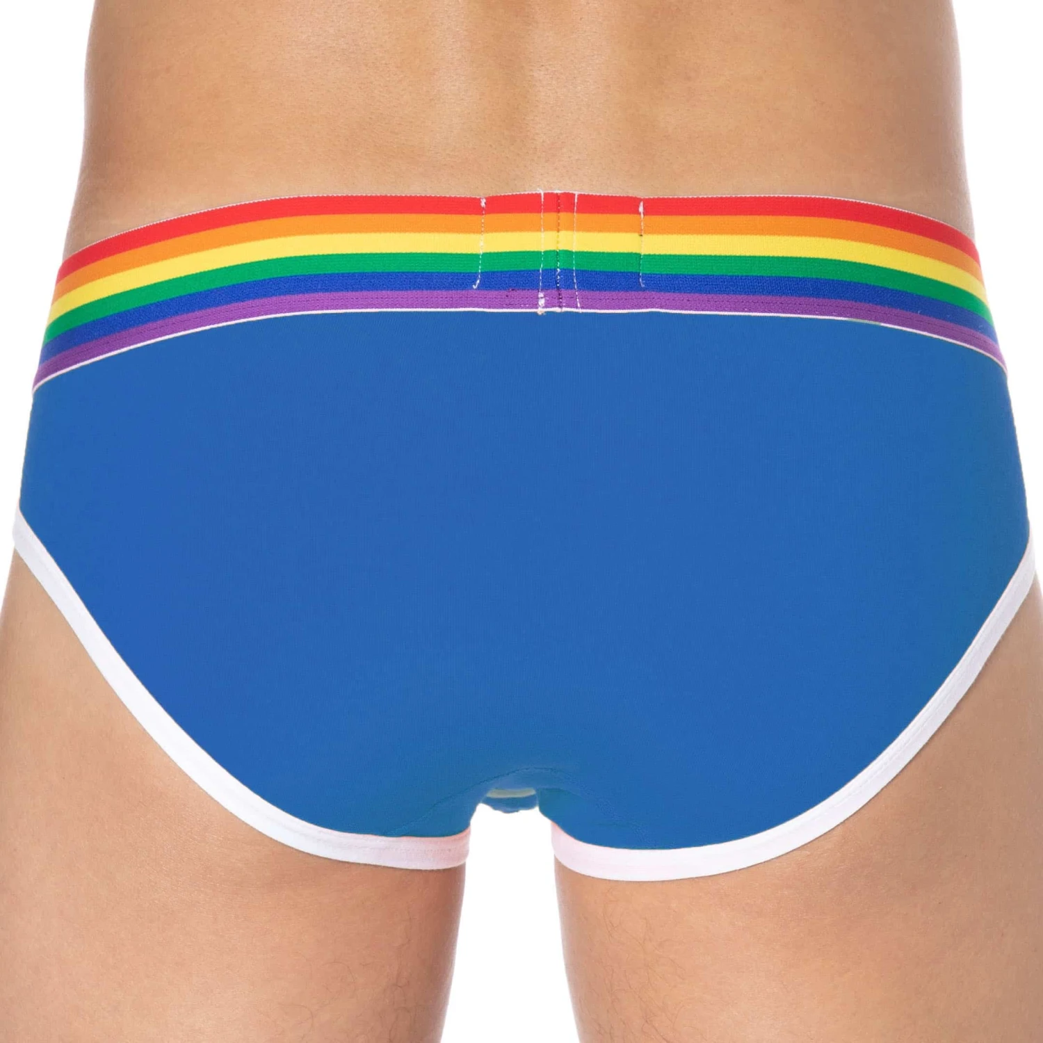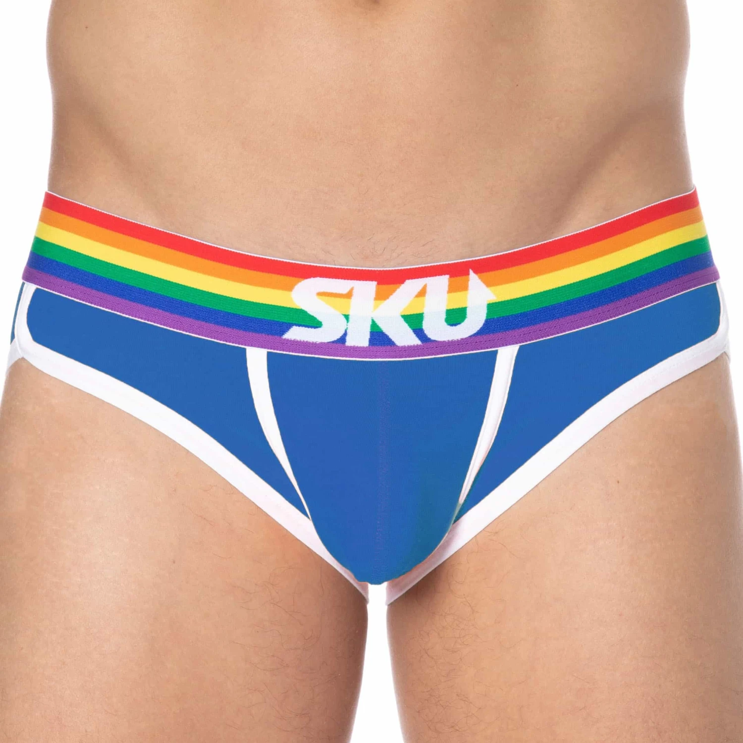 Slip sport et sexy en coton premium doux et extensible de couleur intense. Coupe taille basse ajustée. Poche frontale préformée assurant un excellent maintien. Confort enveloppant sur les fesses. Belle échancrure sur le côté. Ceinture arc-en-ciel, large et douce, signée SKU. Bordures contrastées.