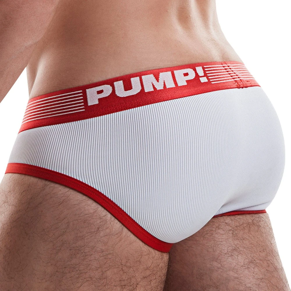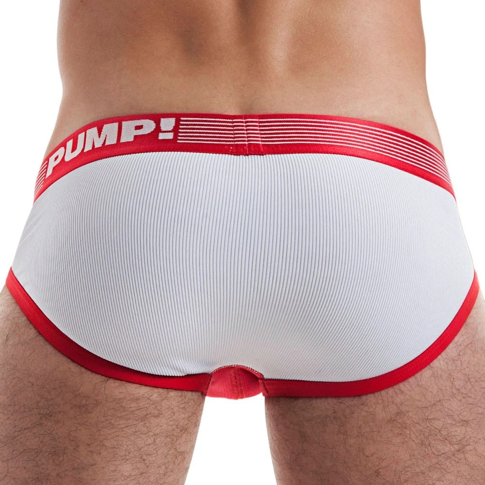 Slip taille basse, en microfibre côtelée très douce, respirante et confortable. Poche frontale en micro mesh super doux. Bordures et poche de couleur contrastée. Ceinture élastique signée PUMP!.