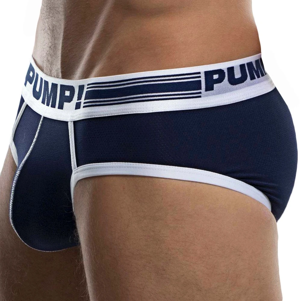 Slip taille basse très ajusté, de couleur vive, en mesh ajouré et respirant. Ceinture large signée PUMP! Bordures de couleur contrastée.