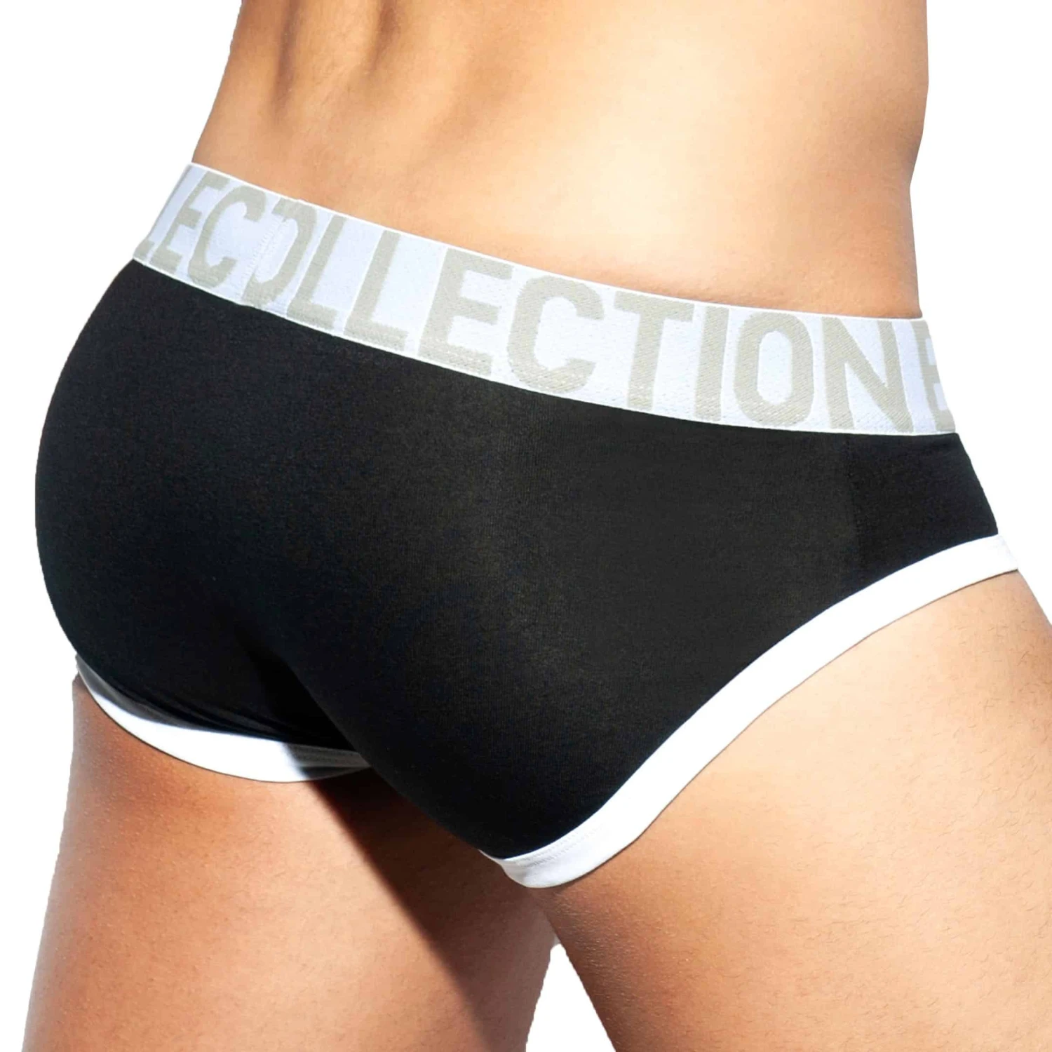 Slip taille basse très ajusté en viscose ultra douce, soyeuse et confortable, pour un effet seconde peau. Bordures de couleur contrastée. Belle poche frontale préformée. Ceinture élastique signée ES Collection.