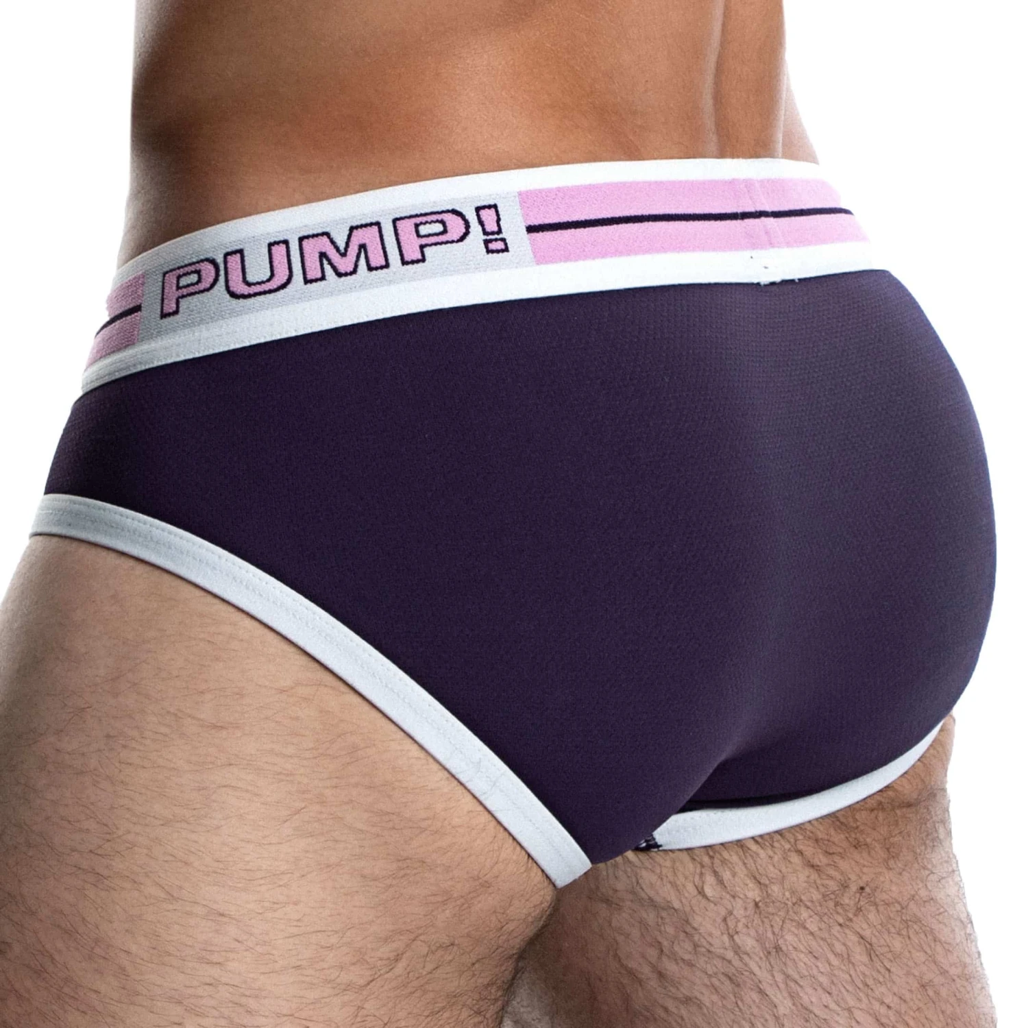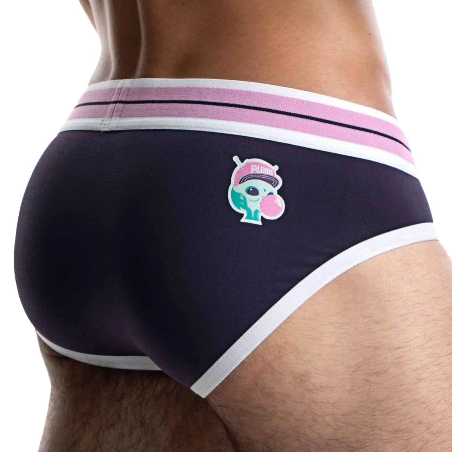 Slip super confortable en micro mesh ajouré et respirant. Poche frontale doublée. Ecussons Space Candy devant et derrière. Ceinture élastique large signée PUMP!