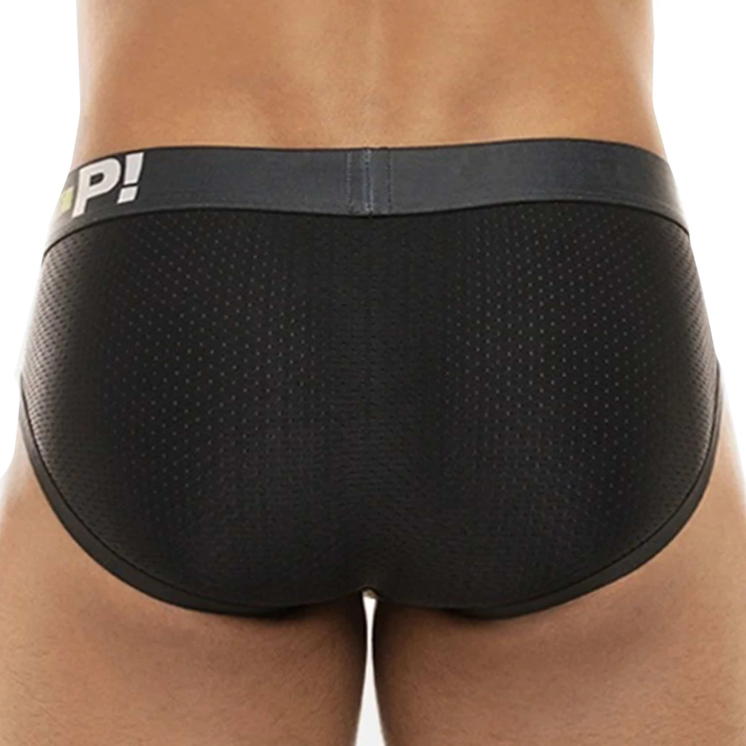 Slip doux et confortable en mesh extensible. Poche frontale doublée en coton. Coutures multicolores. Ceinture élastique signée Pump! avec dégradé de couleurs et slogan Strength comes from pride (la force vient de la fierté).