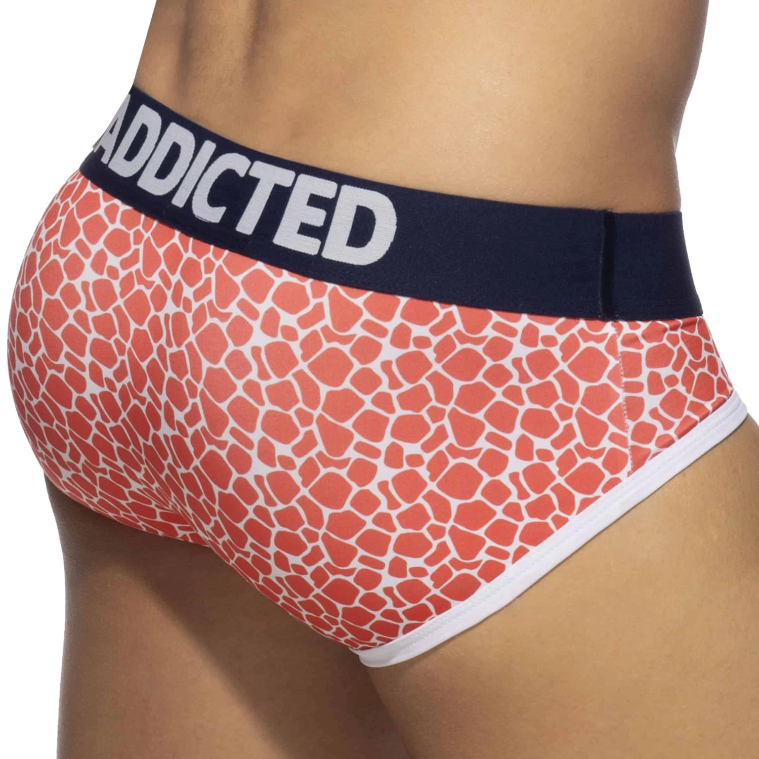 Slip 2 en 1 qui peut être porté en tant que sous-vêtement ou maillot de bain. Imprimé serpent. Microfibre à séchage rapide, ultra douce et résistante. Matière et design innovants qui assurent un confort maximal sous un pantalon comme dans l’eau. Poche frontale push up pour mettre en avant votre masculinité. Coupe taille basse très ajustée. Ceinture élastique signée Addicted.