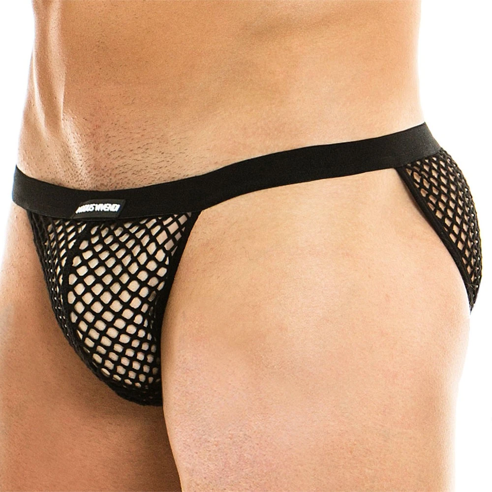 Slip taille basse provocant en coton mesh dont le maillage très large laisse peu de place à l’imagination. Poche frontale non doublée. Coupe tanga ajustée et très sexy. Etiquette Modus Vivendi en silicone cousue sur la fine ceinture élastique.