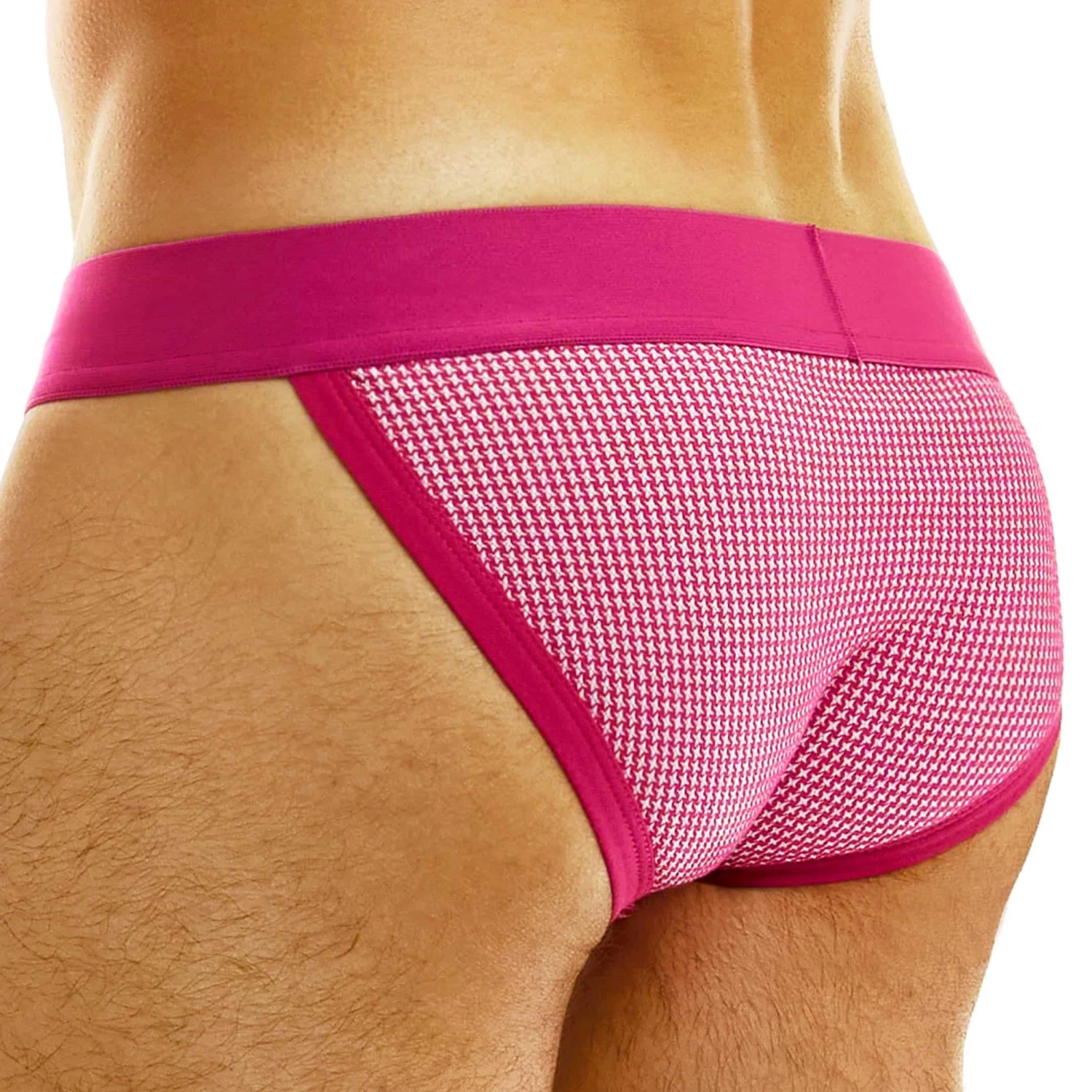 Slip très confortable en coton mélangé. Motif pied-de-poule de couleur vive. Ouverture kangourou. Coupe tanga, taille basse et sexy. Ceinture élastique signée Modus Vivendi.