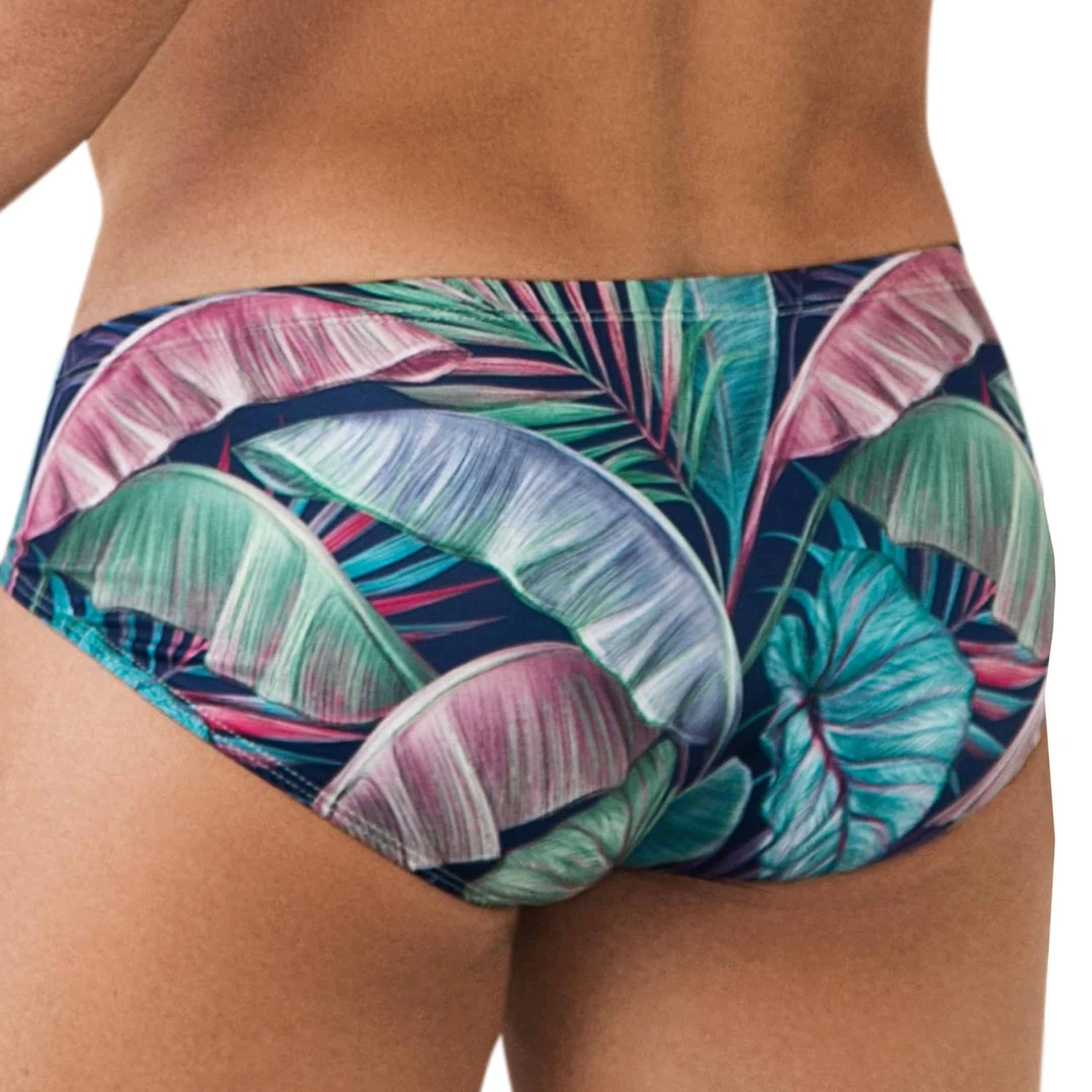 Slip super taille basse en microfibre légère et confortable. Superbe imprimé floral. Poche frontale anatomique enveloppant naturellement votre intimité, pour un maintien très agréable et sensuel. Coupe originale très ajustée. Logo Clever cousue sur la ceinture élastique recouverte.