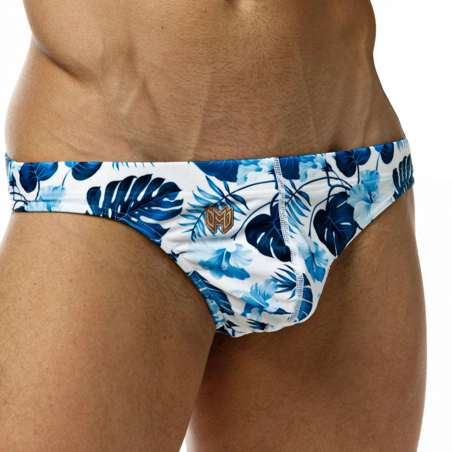 String de bain très sexy en microfibre italienne, extensible et résistante. Imprimé floral. Coupe taille basse et très ajustée. Poche frontale doublée. Logo brodé. Ceinture élastique avec cordon de serrage intérieur.