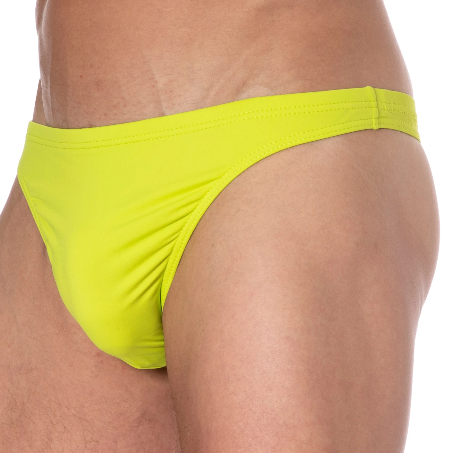 String de bain très sexy en microfibre extensible et résistante, séchant rapidement. Couleur intense. Coupe taille basse et très ajustée. Poche frontale doublée. Fine ceinture élastique recouverte. Logo Sweet Banana en silicone au dos. Fabrication 100% italienne.