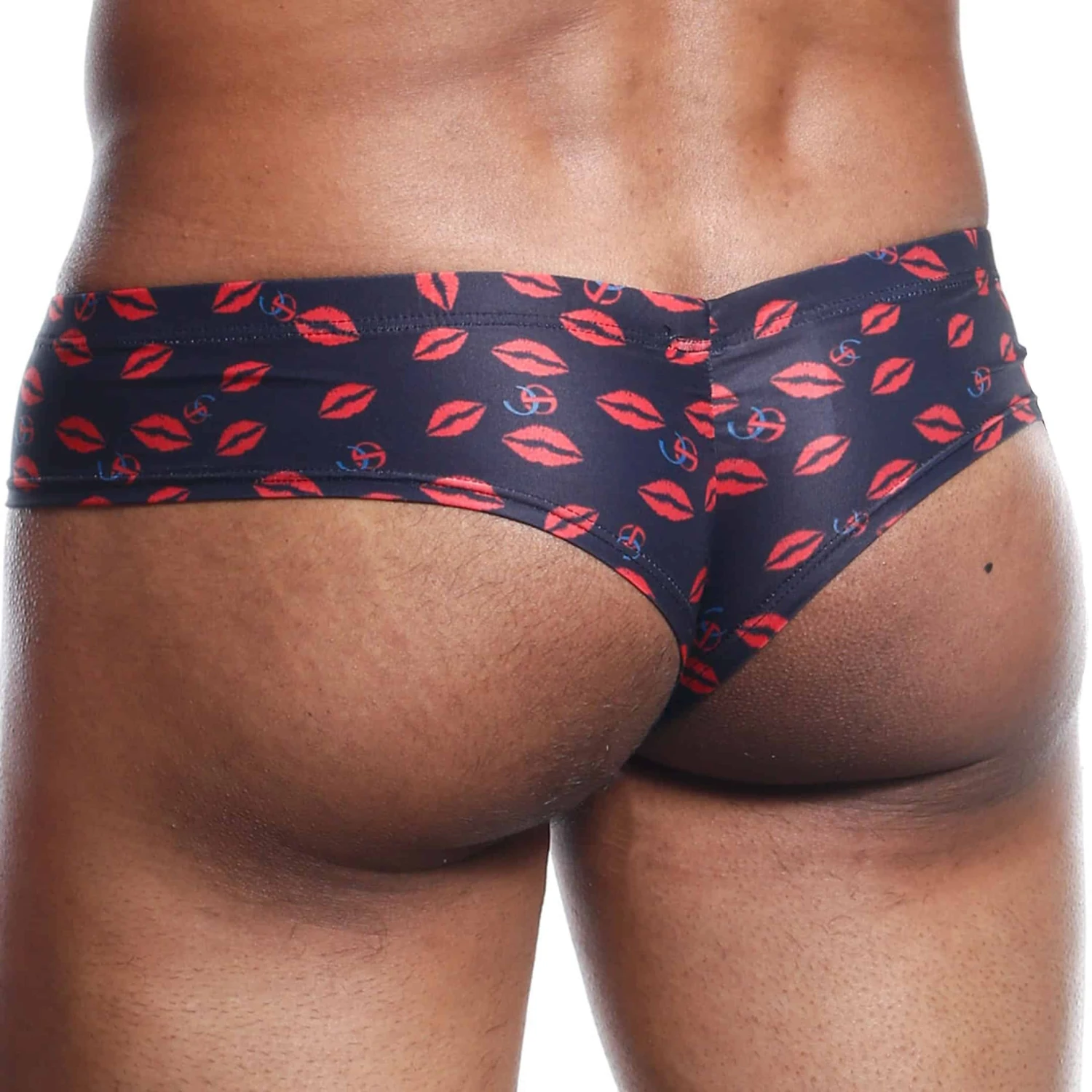 Ni tout à fait un string, ni vraiment un slip, ce mini sous-vêtement très sexy avec sa poche bulge dispose d’une coupe originale ne recouvrant que très partiellement les fesses. Imprimé lèvres rouges pour dire « Je t’aime ». Fine ceinture élastique recouverte.