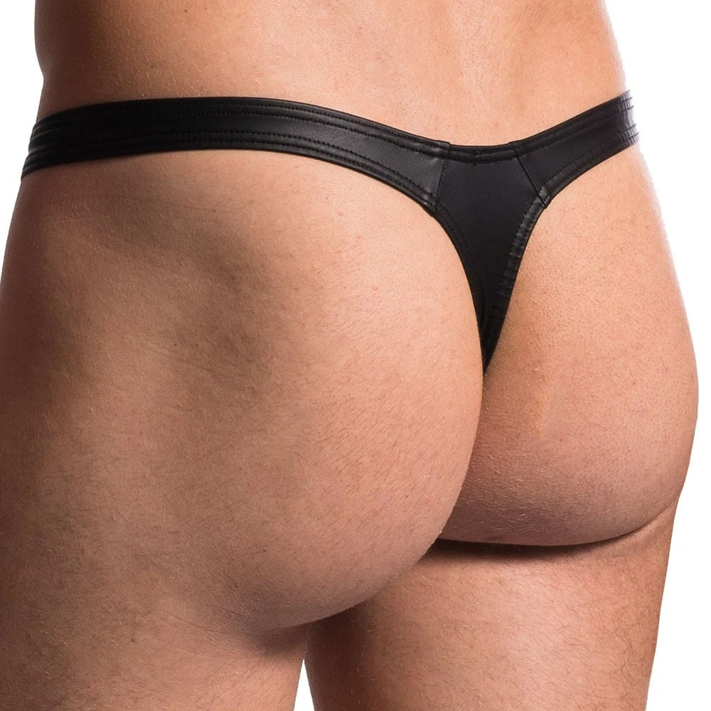 String très provocant en microfibre fine, légère, respirante et très agréable au contact de la peau. Matière semi-brillante rappelant le latex. Etiquette Manstore cousue sur la ceinture élastique.