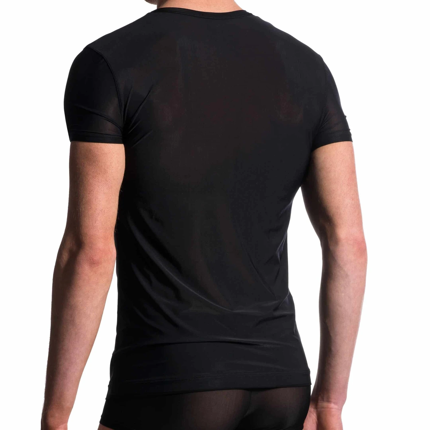 T-shirt très sexy en microfibre extensible et transparente. Matière douce et légère. Manches courtes et col en V. Coupe simple, élégante et très confortable.