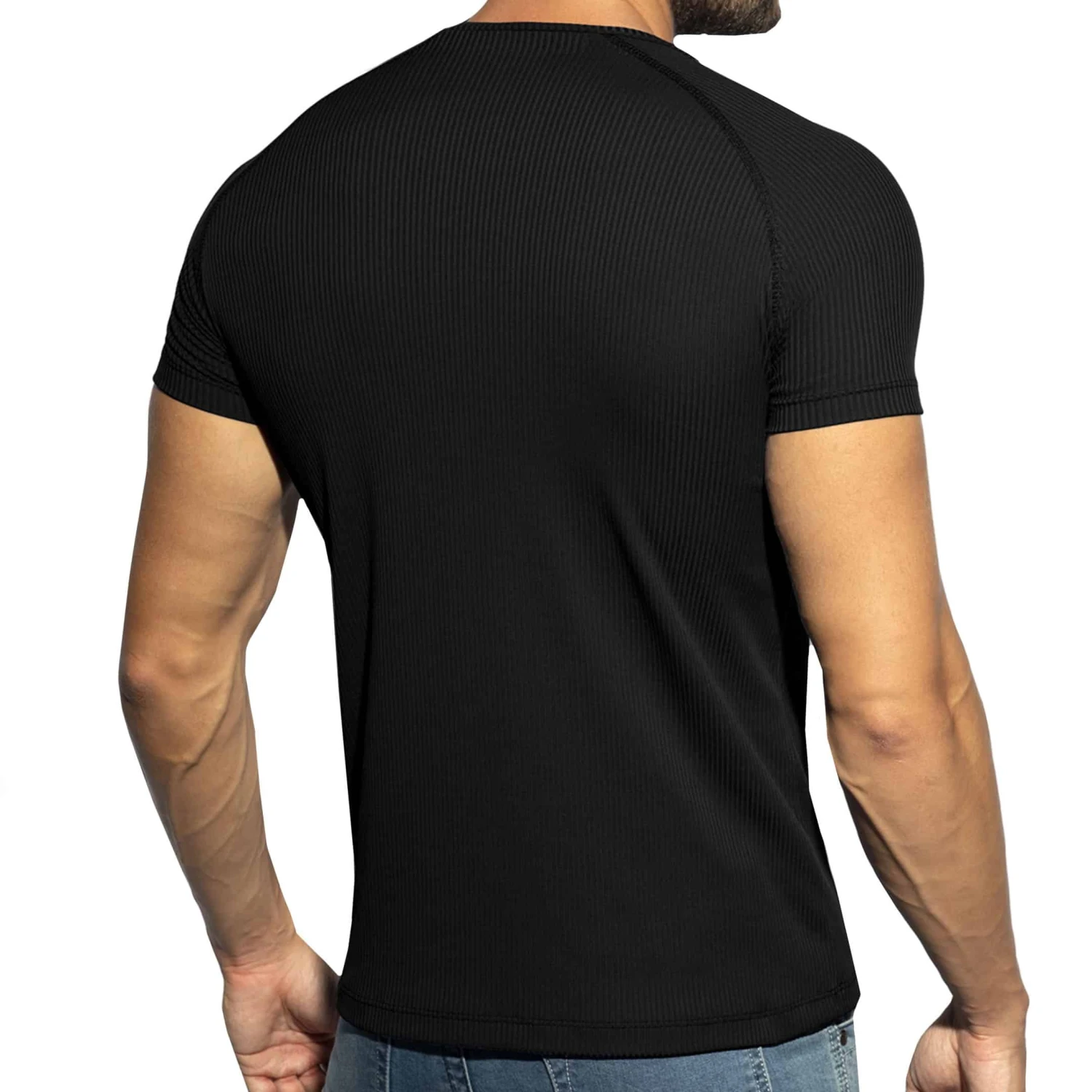 T-shirt en microfibre extensible côtelée de couleur unie. Tissu recyclé doux et antibactérien. Coupe très ajustée. Col en V et manches courtes. Logo ES en silicone sur la poitrine gauche.