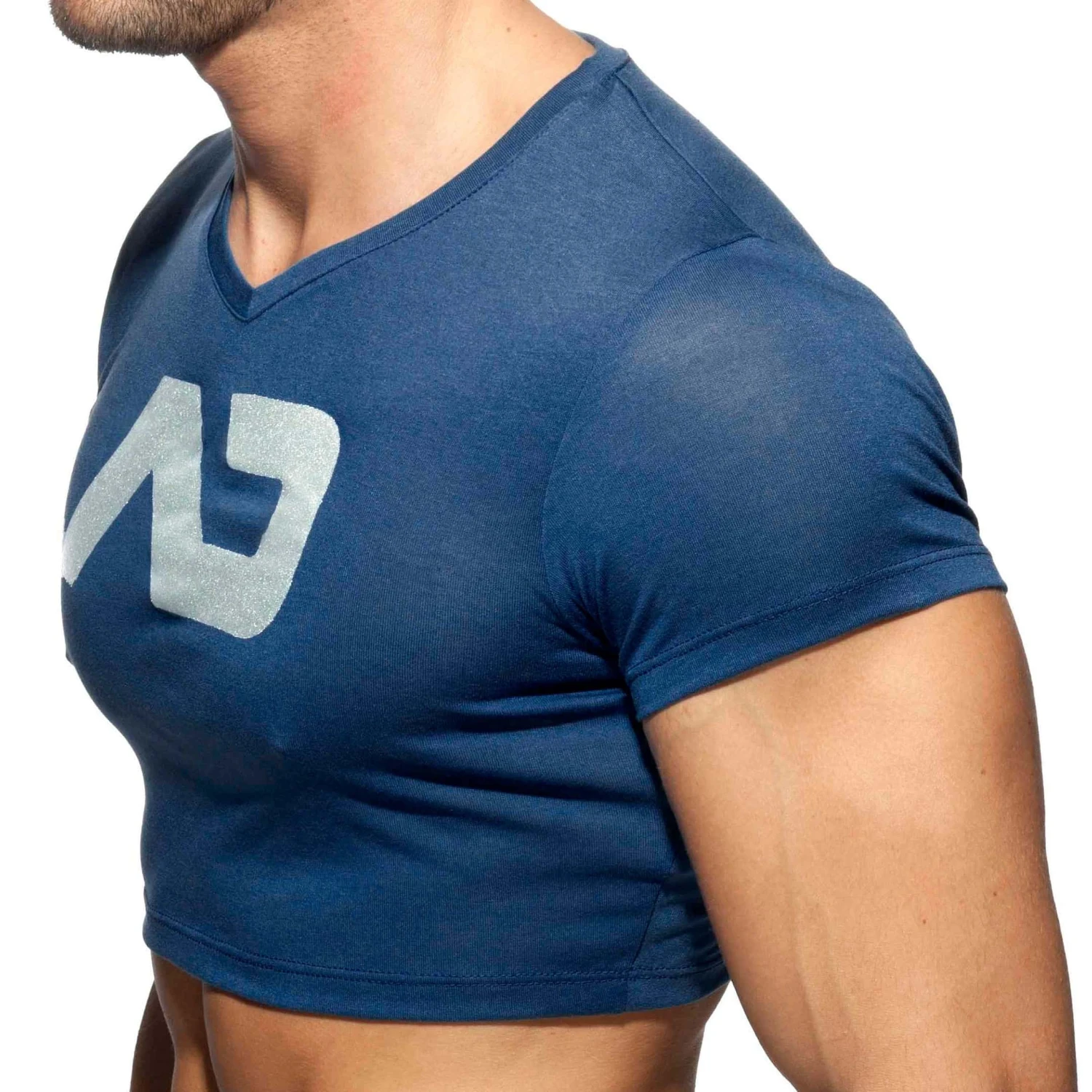 T-shirt sport et sexy, dont la coupe ajustée a été raccourcie pour dévoiler vos abdos. En mélange très doux et léger à base de viscose. Manches courtes et col en V. Gros logo AD de couleur argentée sur la poitrine.